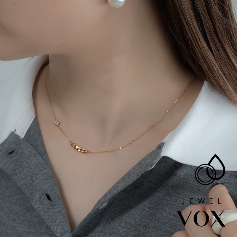 ステンレス キュービックジルコニア コイル モチーフ ネックレス