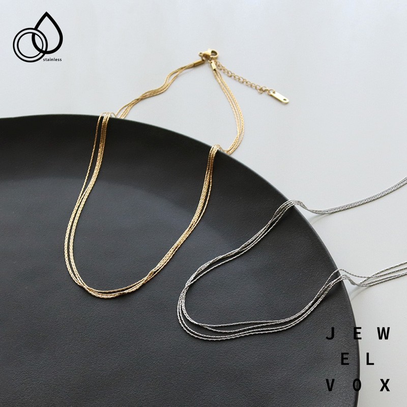サージカルステンレス リングモチーフ 2連ショートネックレス