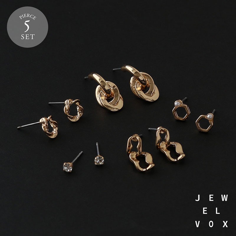 【GUERRILLA SALE対象商品】ニッケルフリー 4点 セット メタル パール ストーン ピアス&イヤーカフ 片耳用