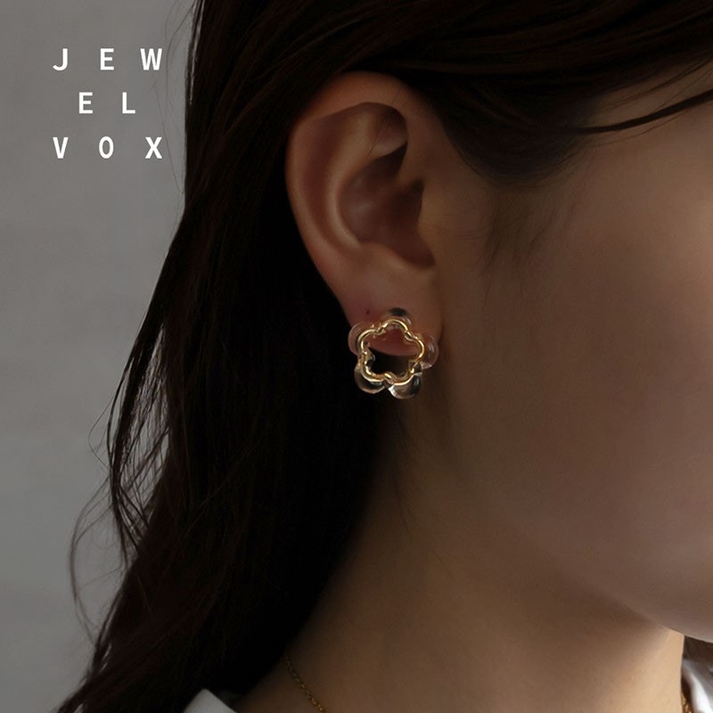 ニッケルフリー チタンポスト モノトーン透かしフラワーピアス