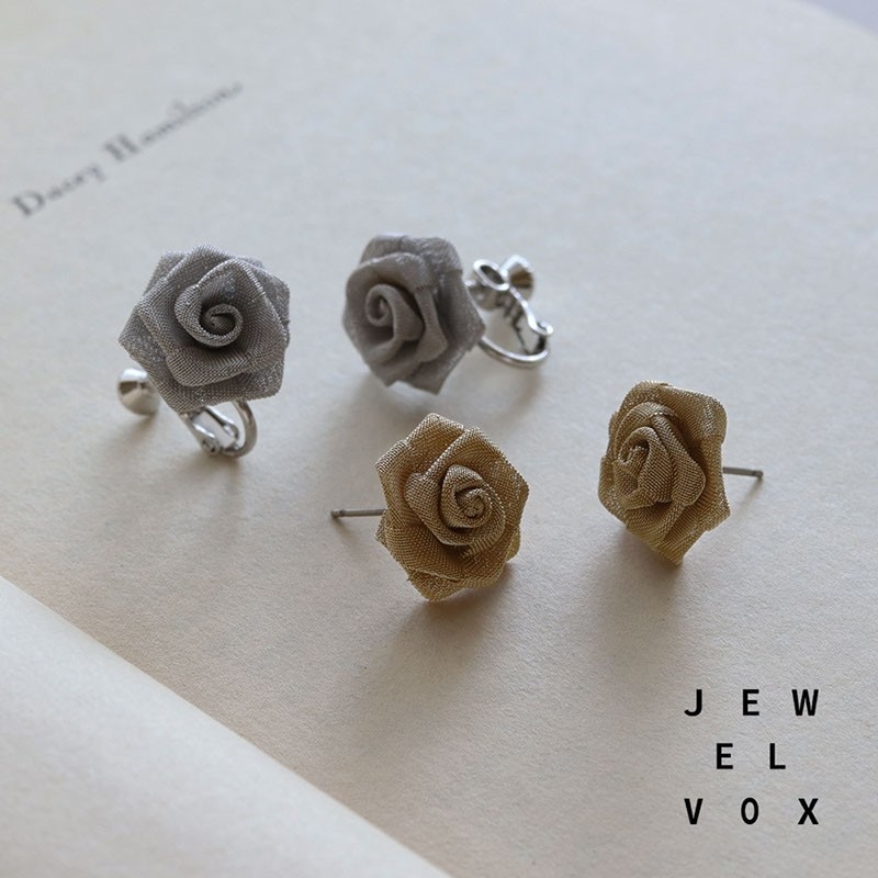 ニッケルフリー メッシュ風 ローズモチーフ ピアス イヤリング