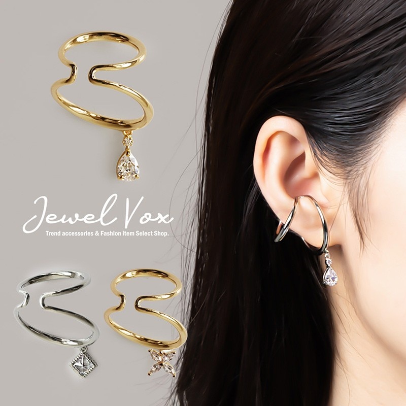 キュービックジルコニア ステンレス製 両耳用 フープ イヤーカフ