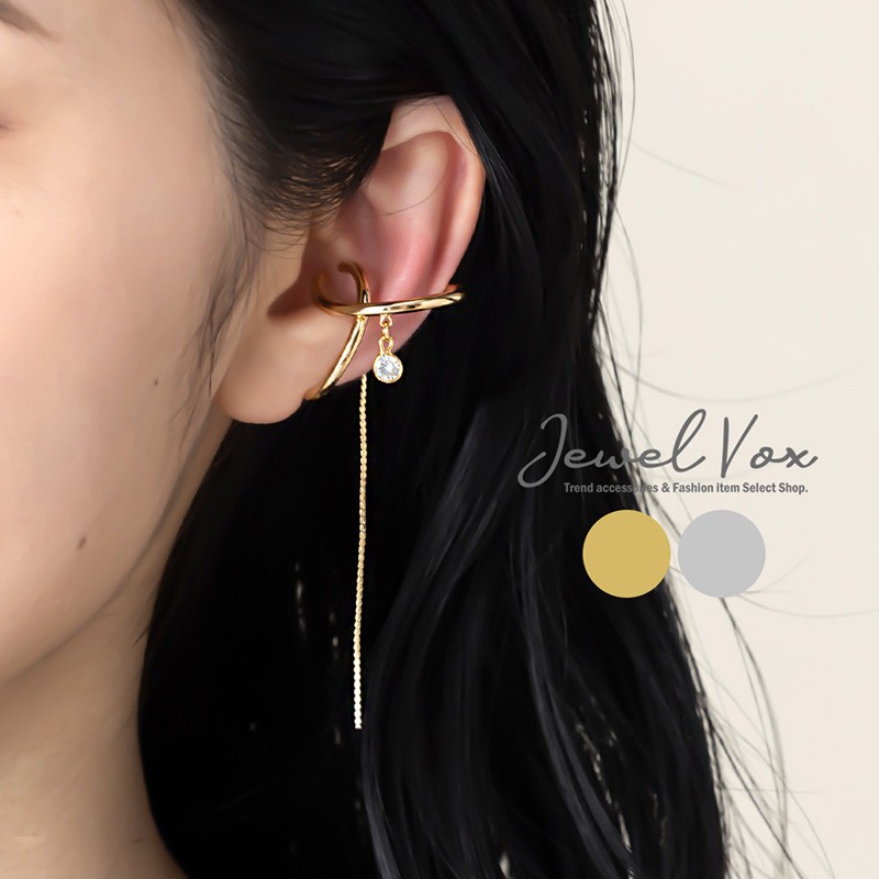 キュービックジルコニア 一粒 ドロップ ロング イヤーカフ 片耳用