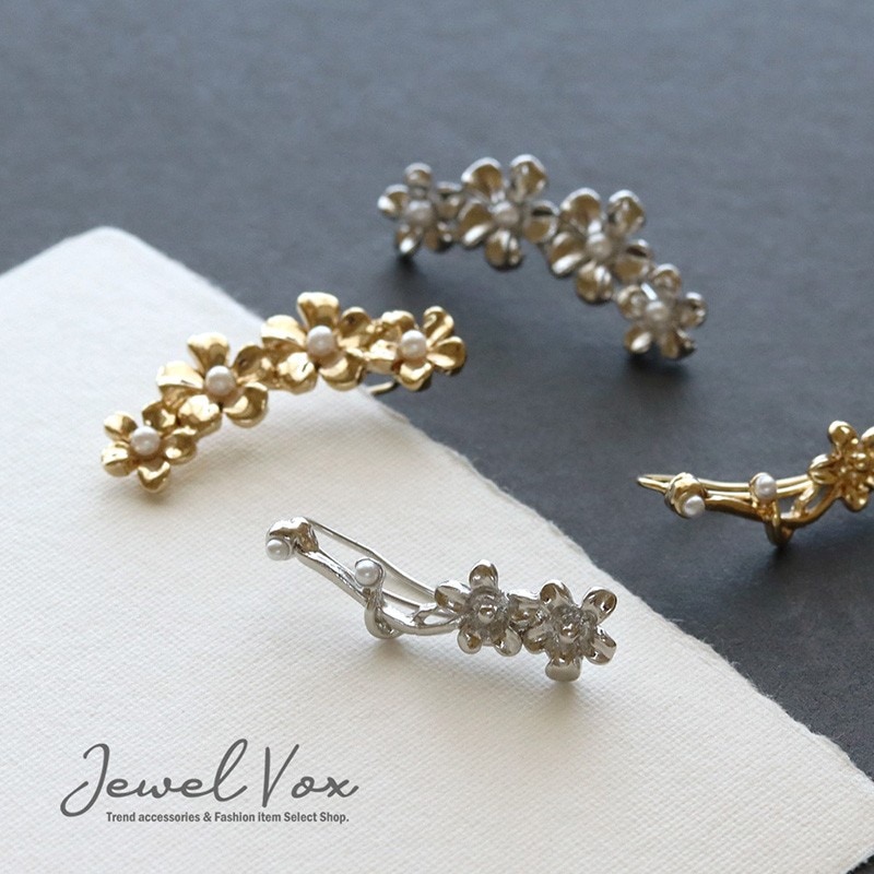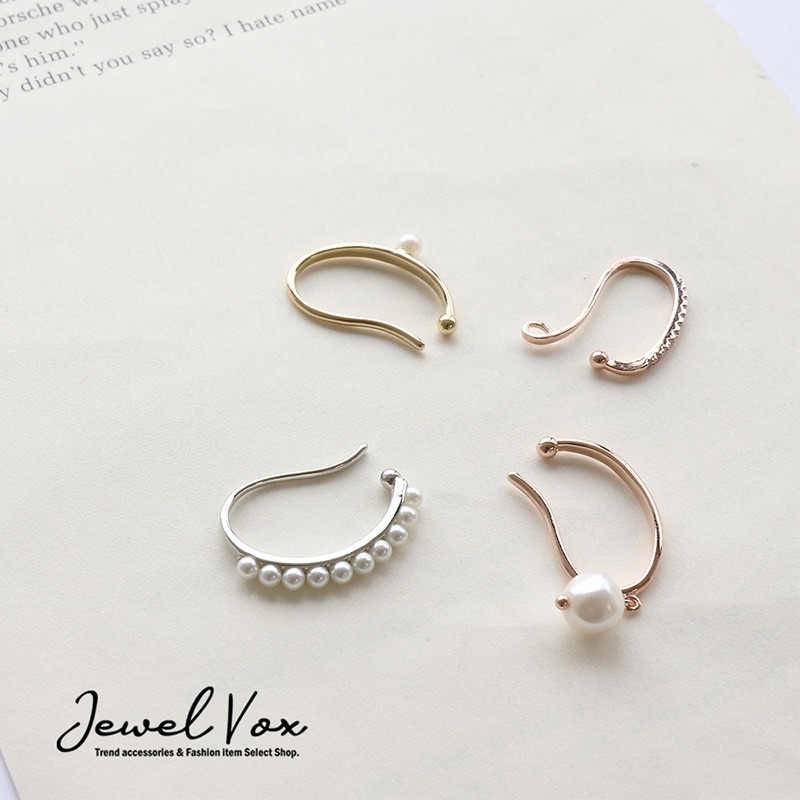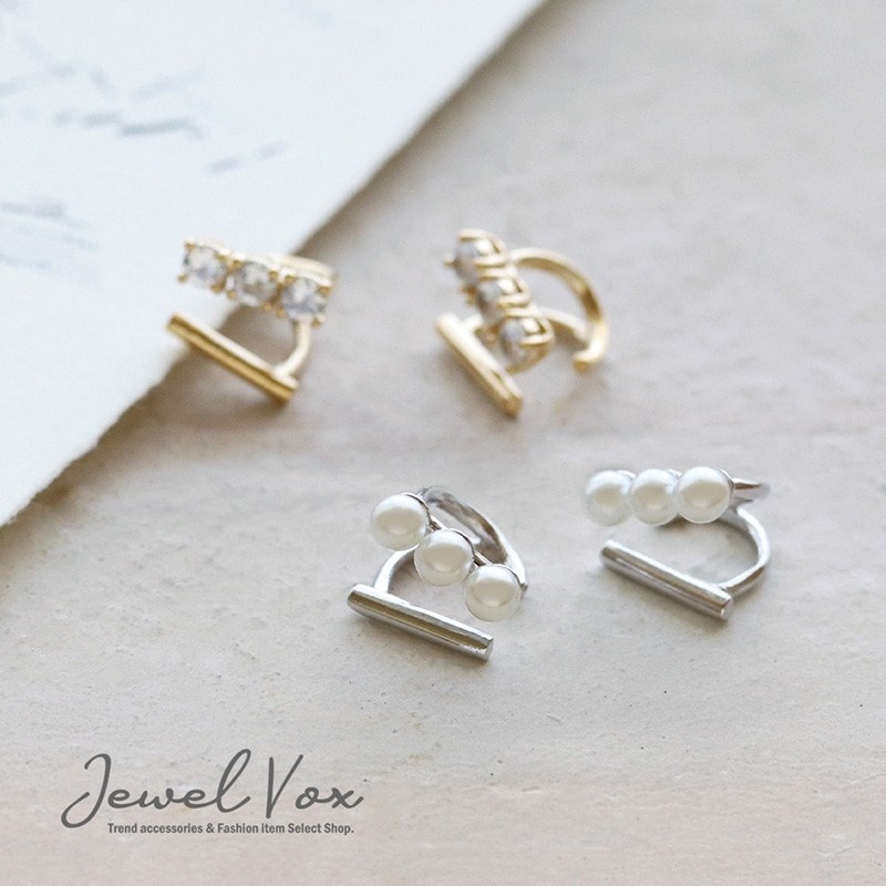 2タイプ パール キュービックジルコニア イヤーカフ 片耳用