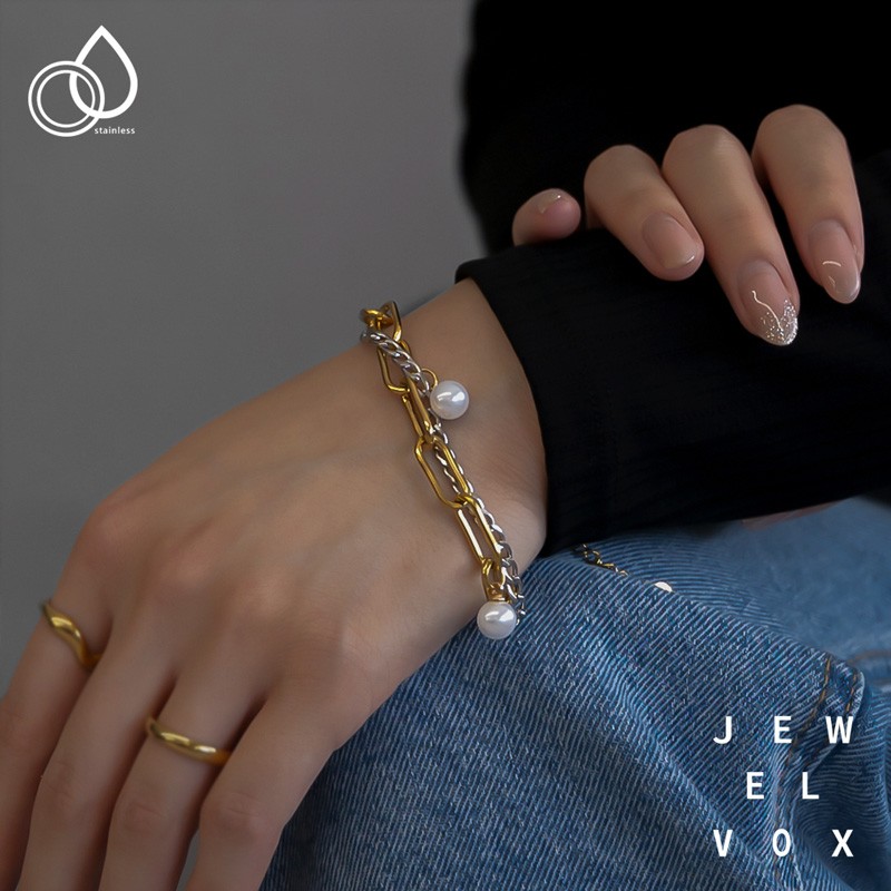 サージカルステンレス マンテル ゴールドチェーン ブレスレット