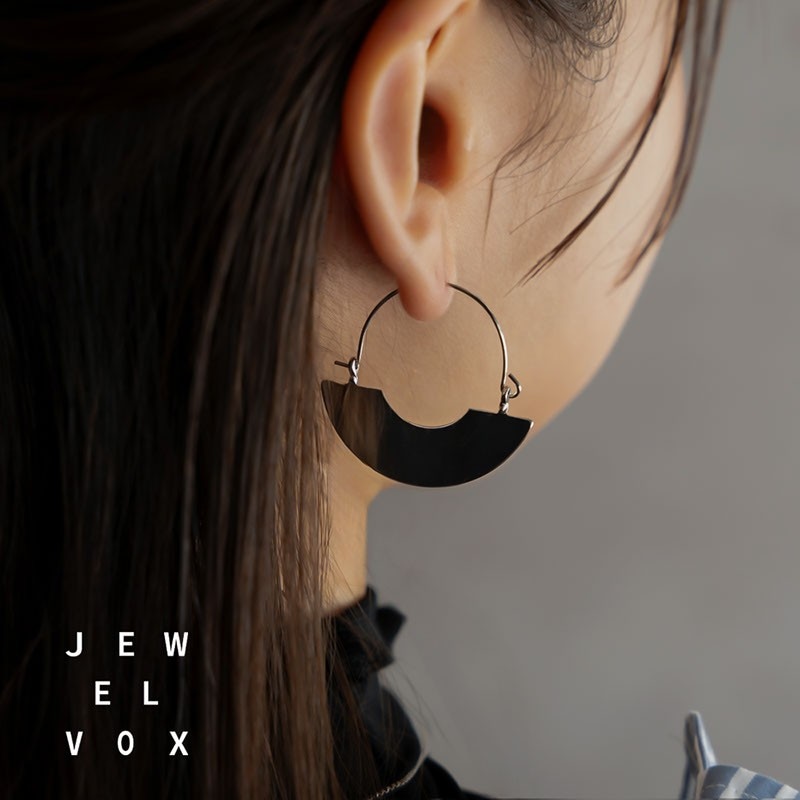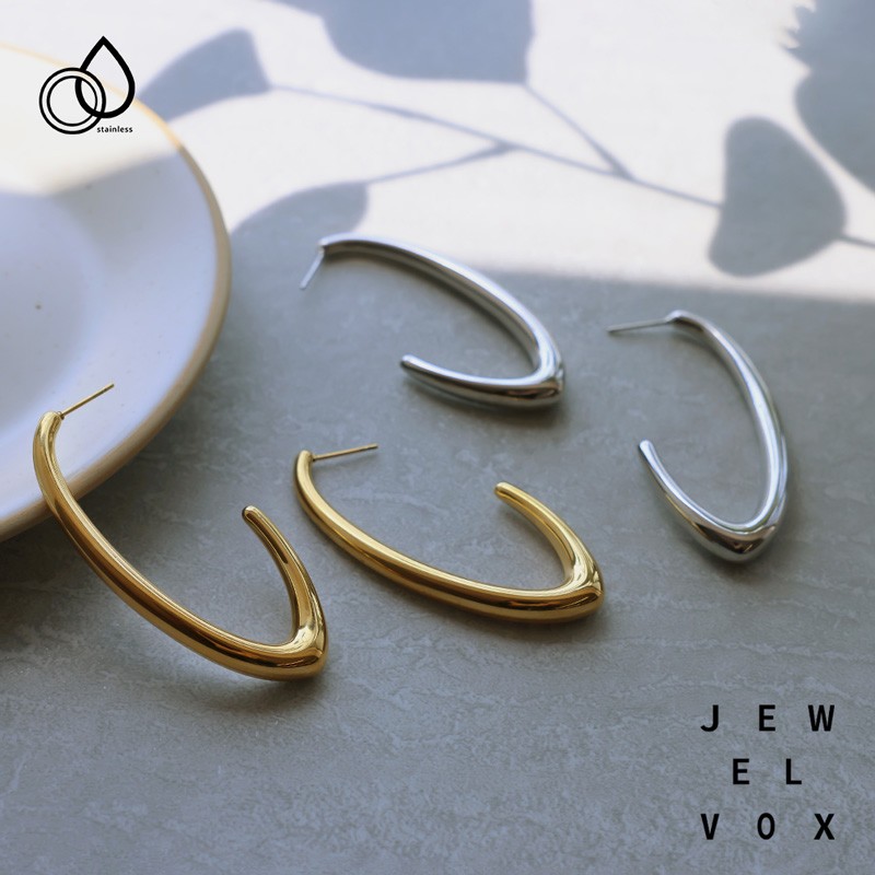 ニッケルフリー チタンポスト ストーン パール ハーフフープ ピアス
