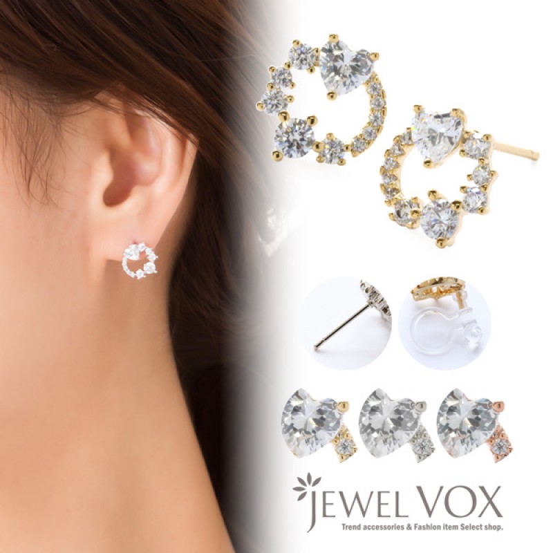キュービックジルコニア ステンレス製 両耳用 フープ イヤーカフ