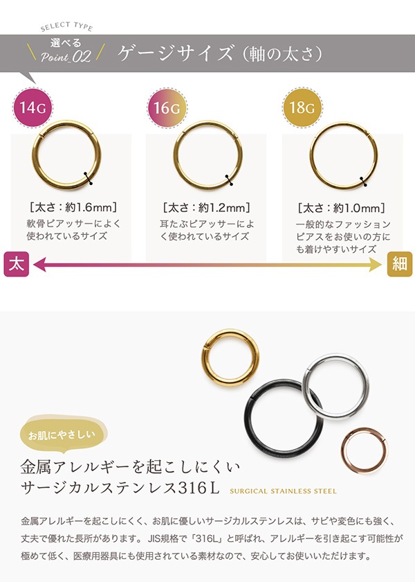 | 18G | ゴールド【6mm】 |