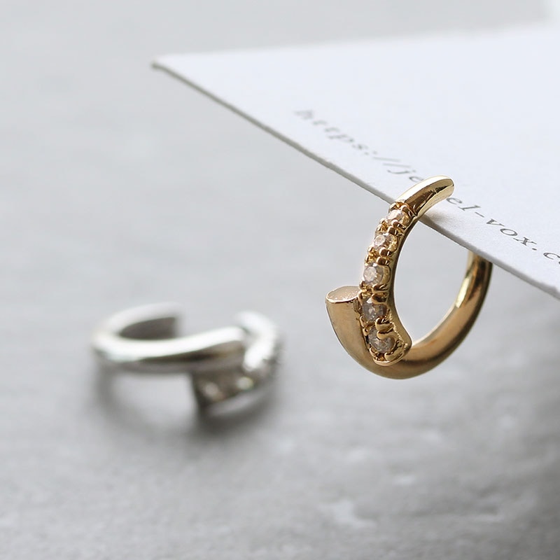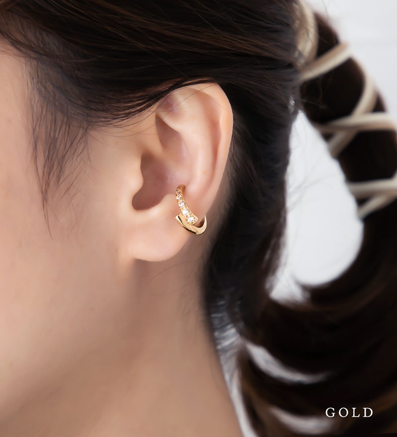 耳の軟骨部分に引っ掛けるだけの簡単でストレスフリーなウェアリング(イヤーカフ)です。