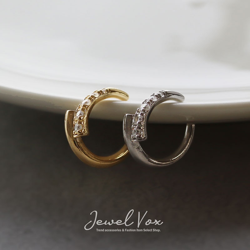 煌めくキュービックジルコニアを埋め込んだハーフリングを重ね合わせたようなスタイリッシュなデザイン。