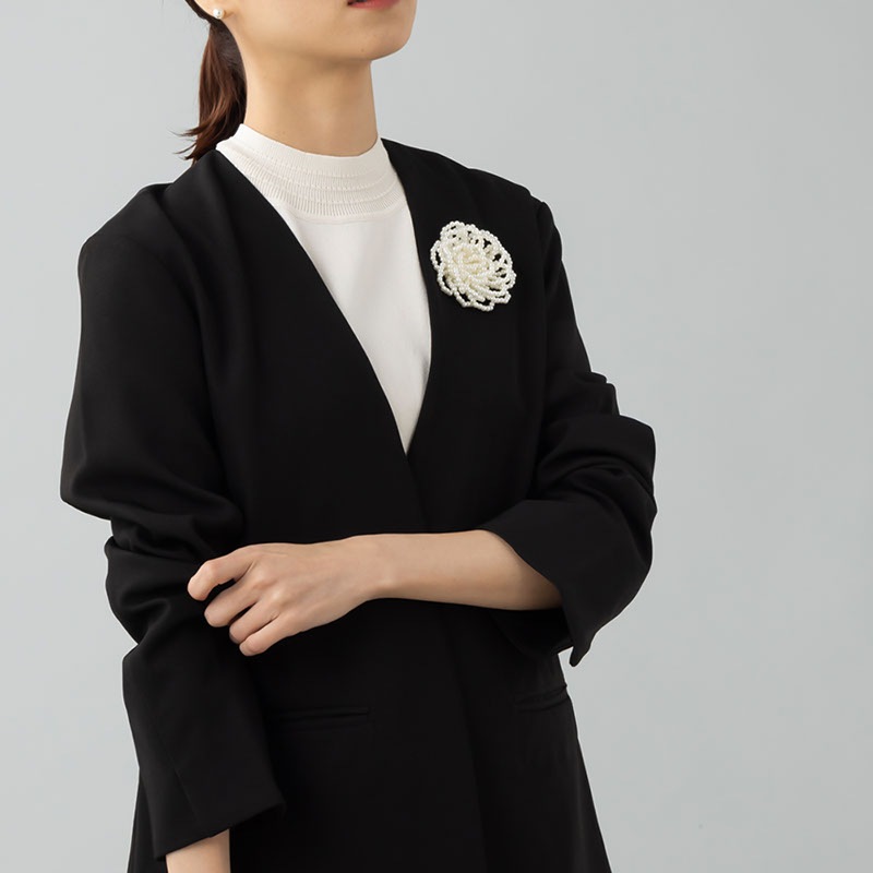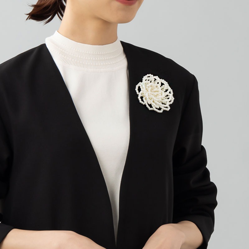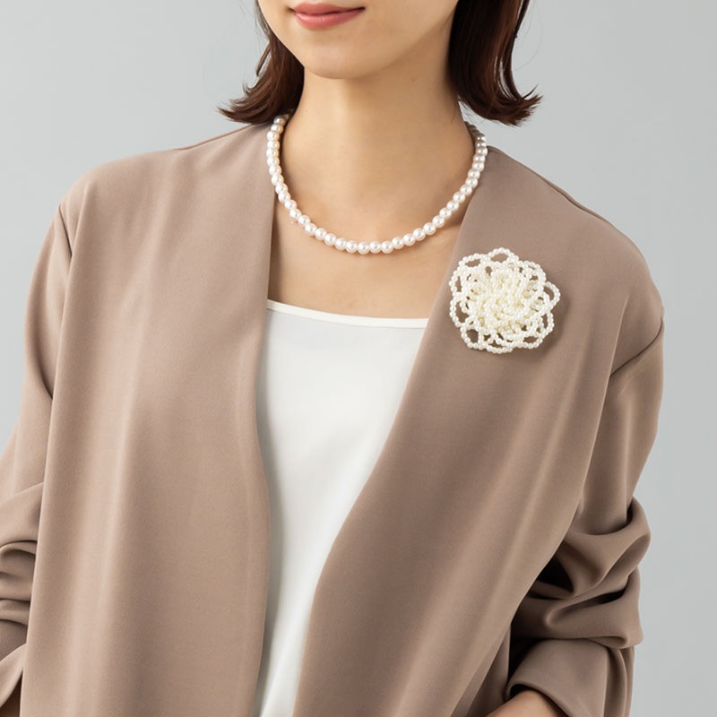 小粒のパールをふんだんに使ったお花の形のフラワーコサージュです。