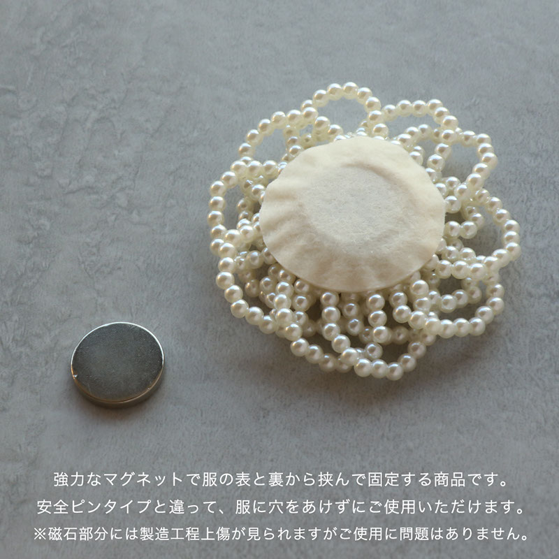 お洋服に穴を開けずに強力なマグネットで挟んでしっかり固定できるのが嬉しいポイント♪