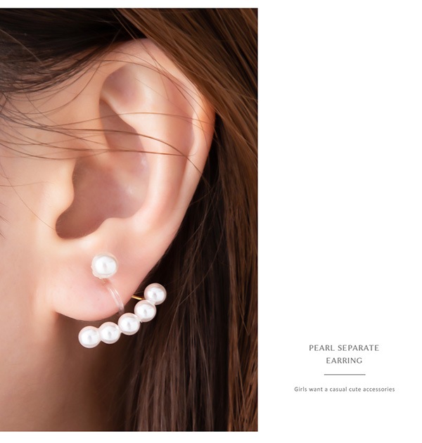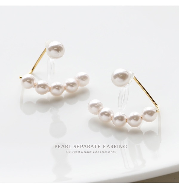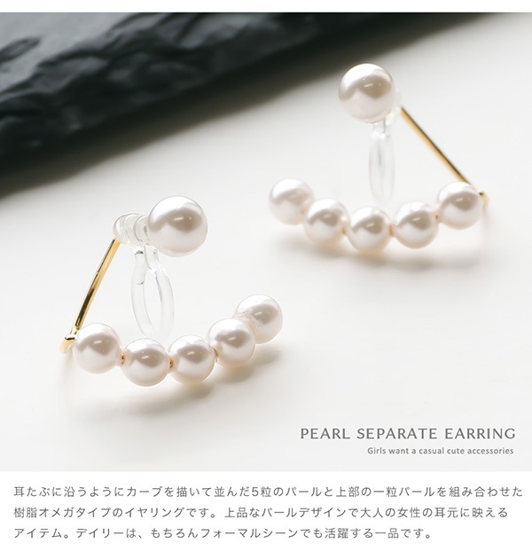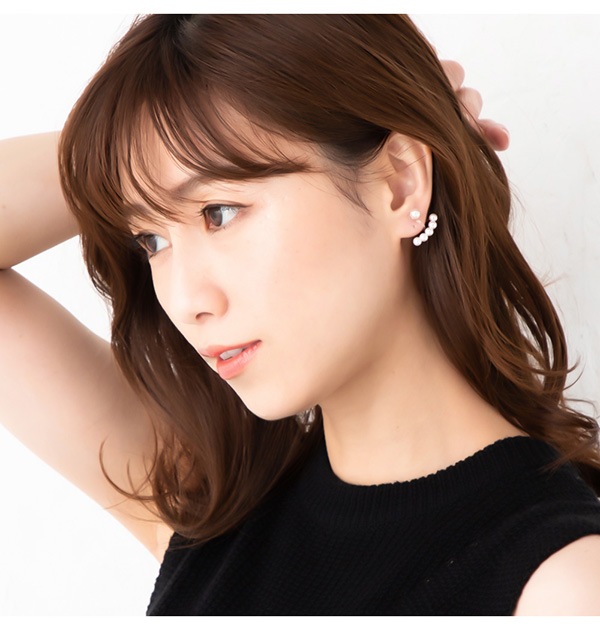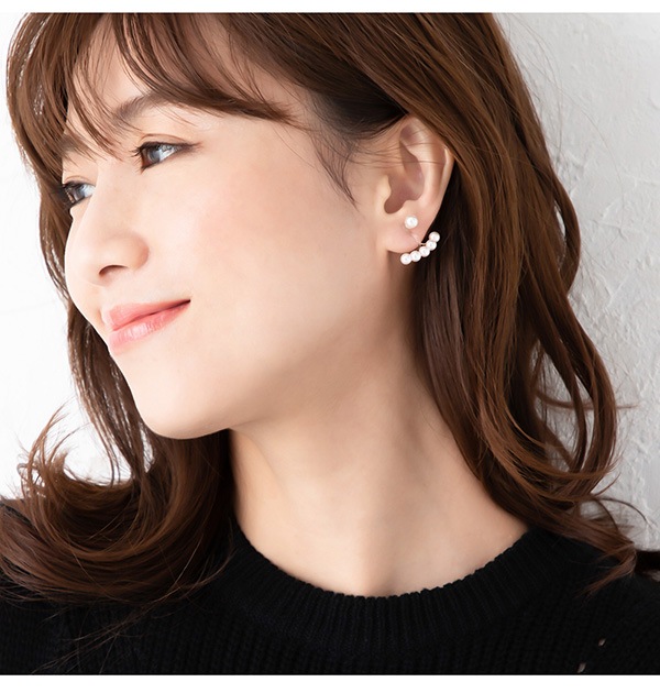 耳たぶに沿うようにカーブを描いて並んだ5粒のパールと上部の一粒パールを組み合わせた