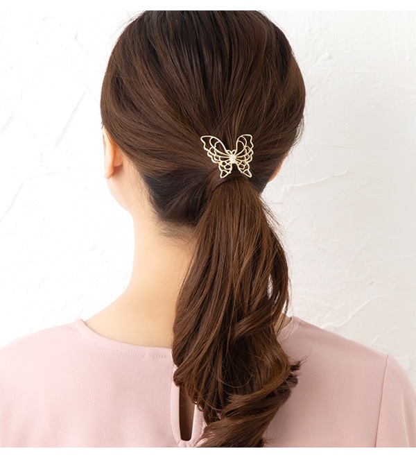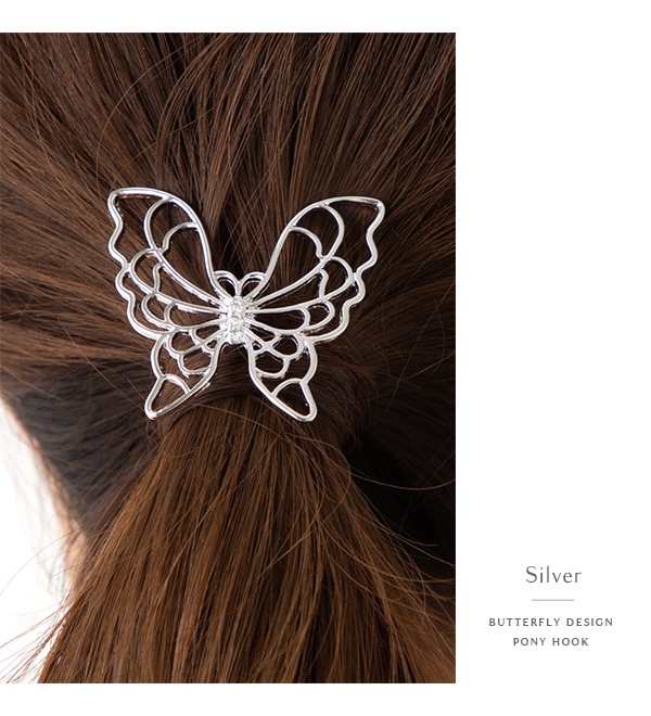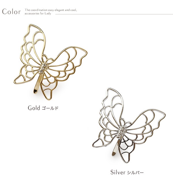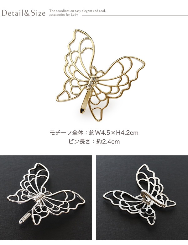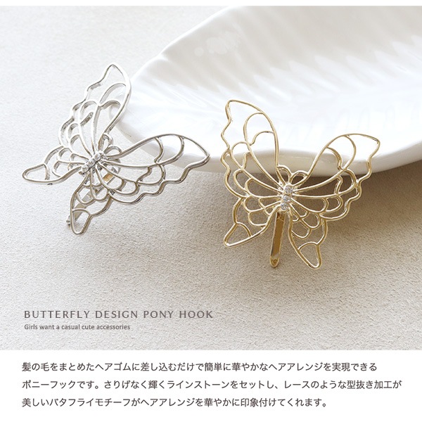 さりげなく輝くラインストーンをセットし、レースのような型抜き加工が美しいバタフライモチーフが