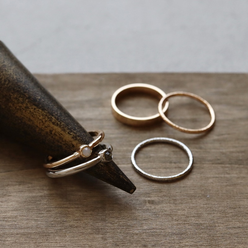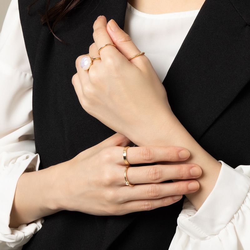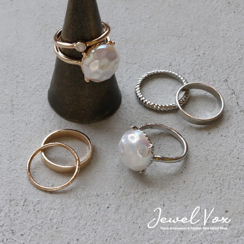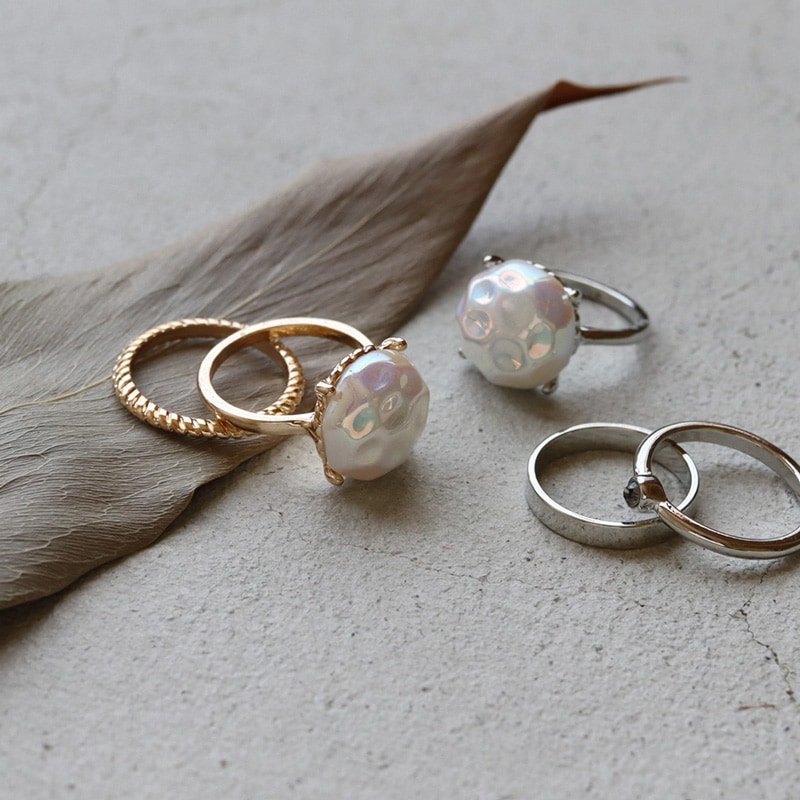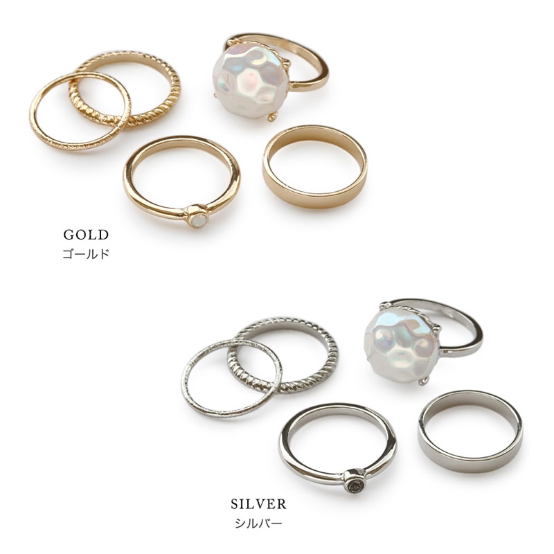 オーロラのようなストーンリングやシンプルなデザインなど、5種類のマルチリングセットです。