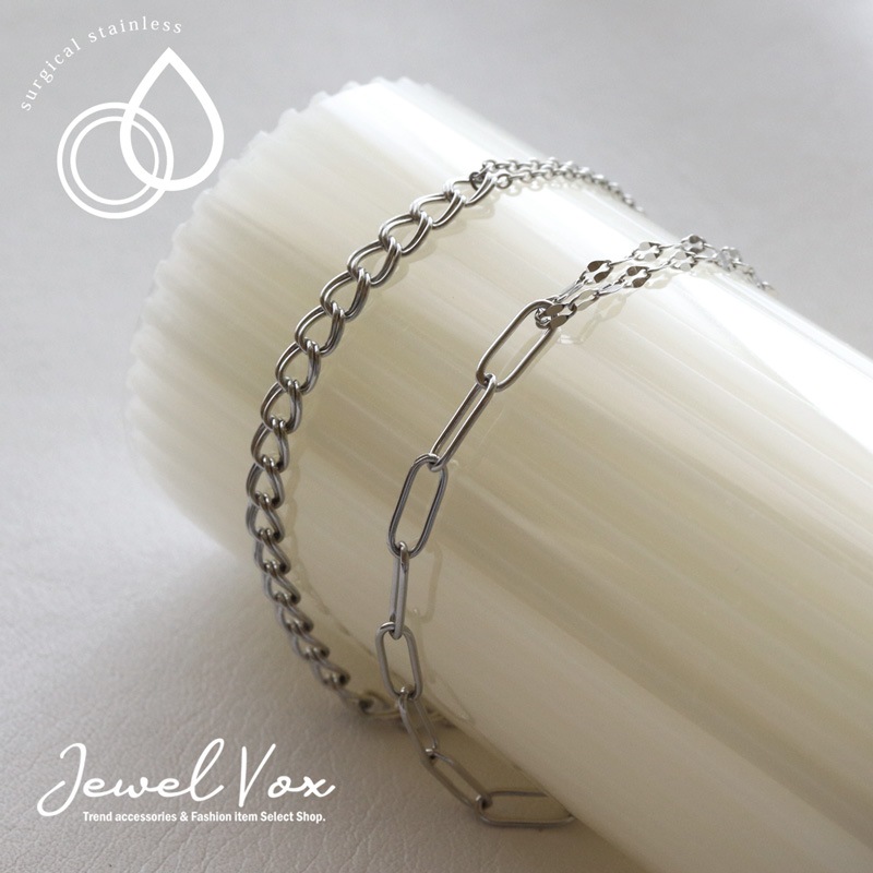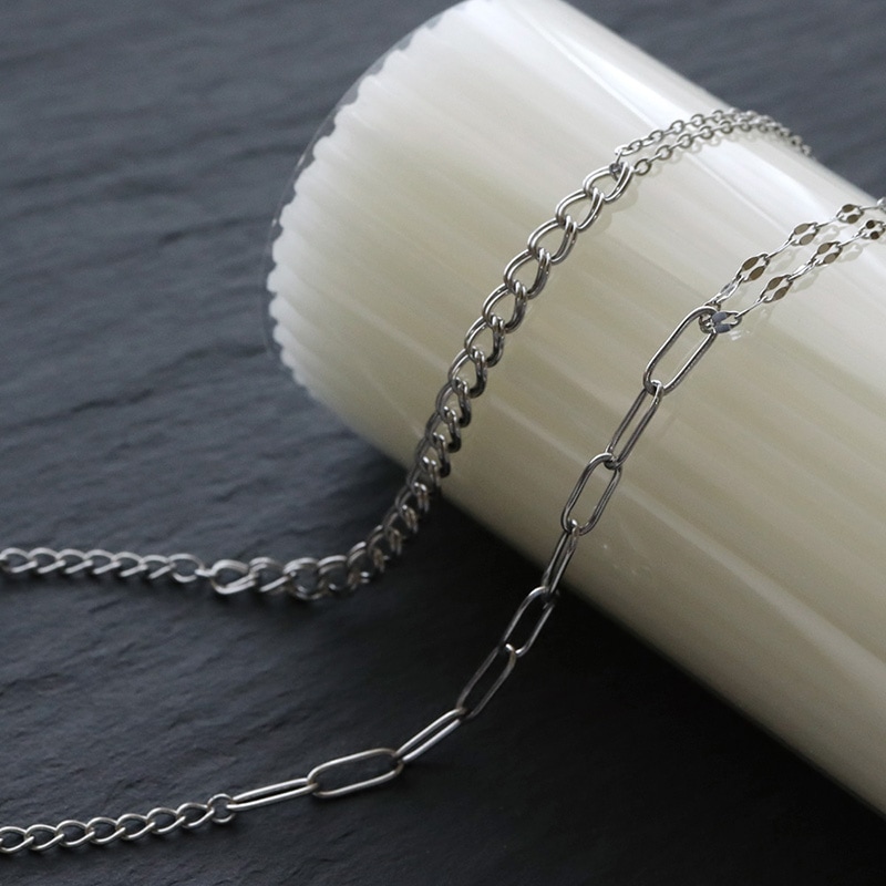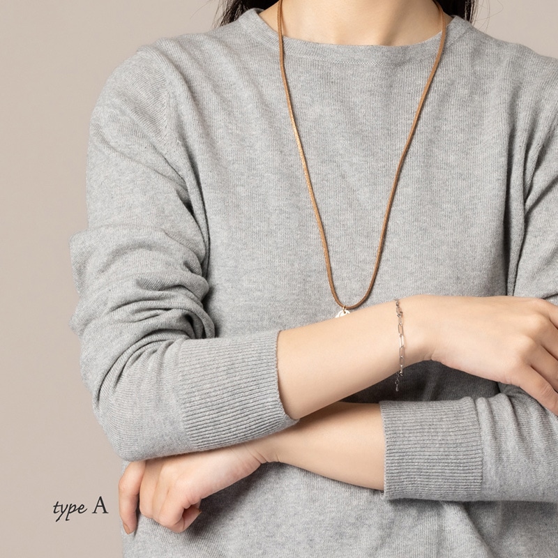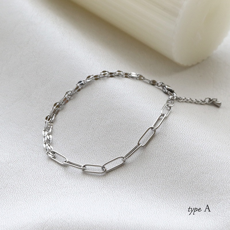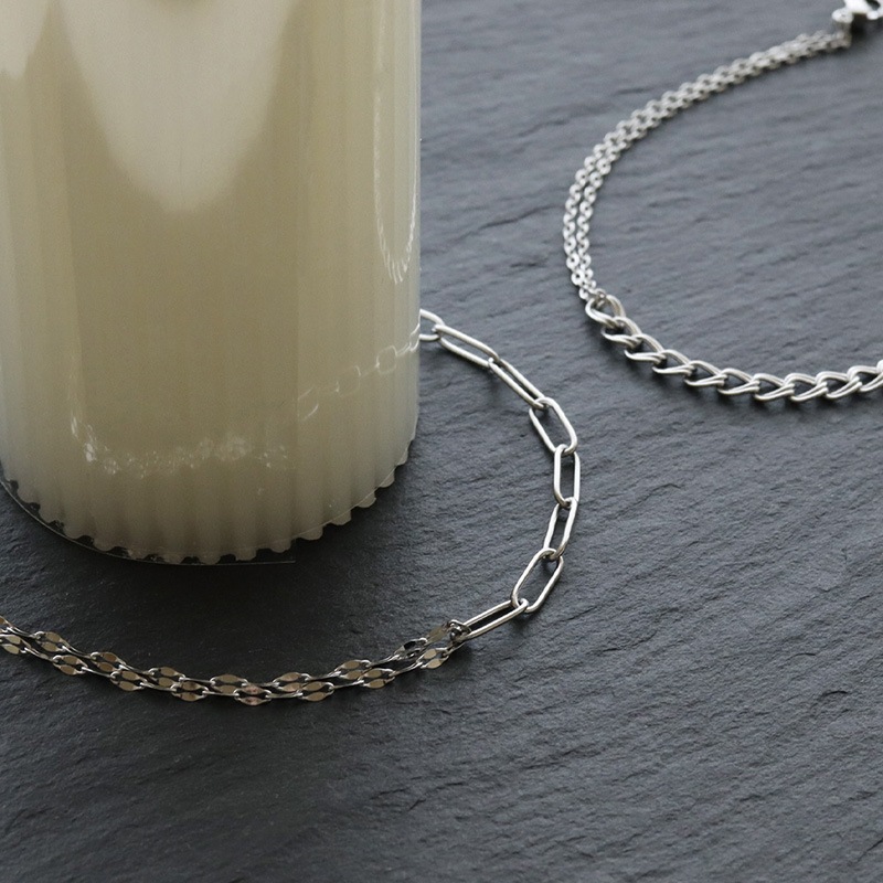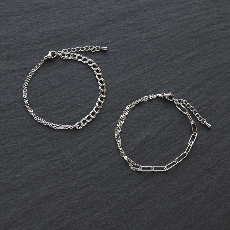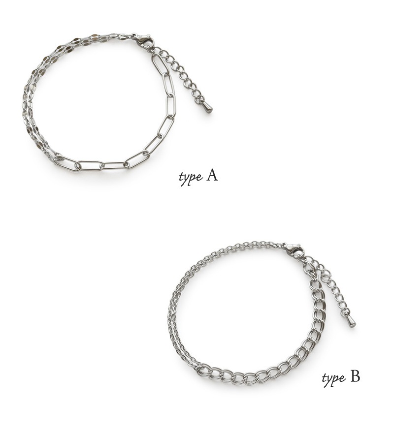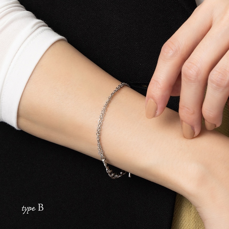 デザインの異なる2種類のチェーンを合わせたブレスレットです。