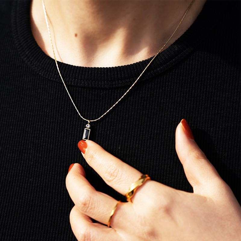 ゴールドチェーンとのバランスも良く、クールな胸元を演出してくれるデザインです。