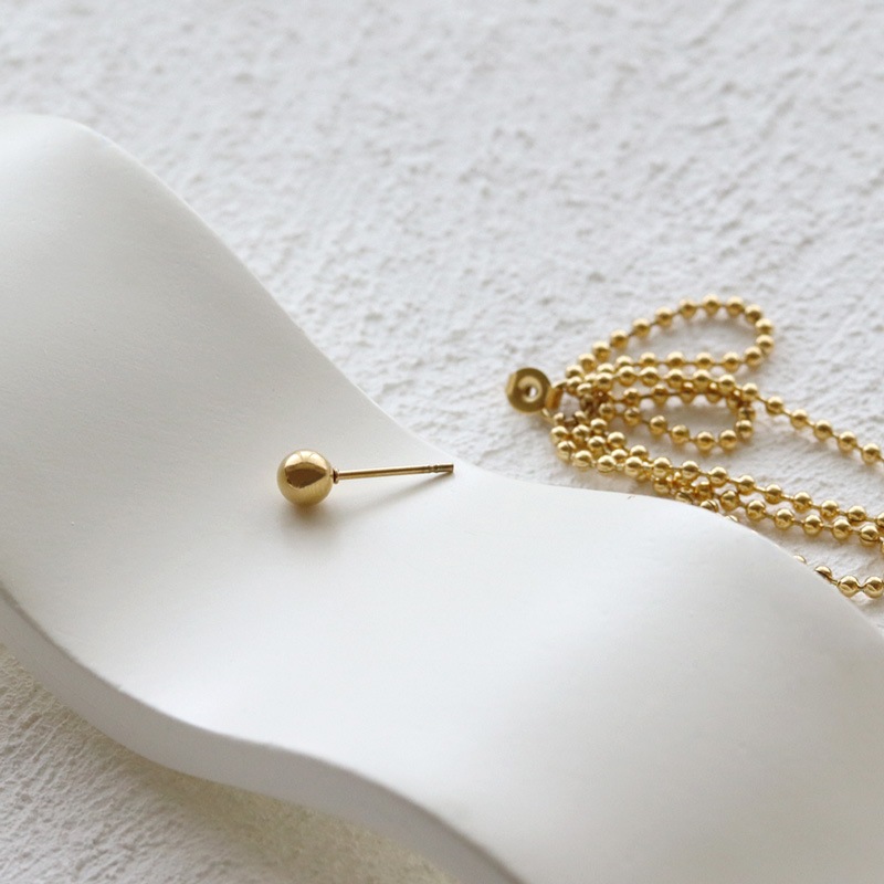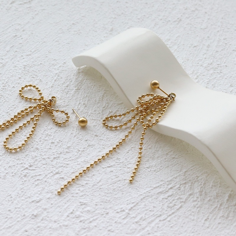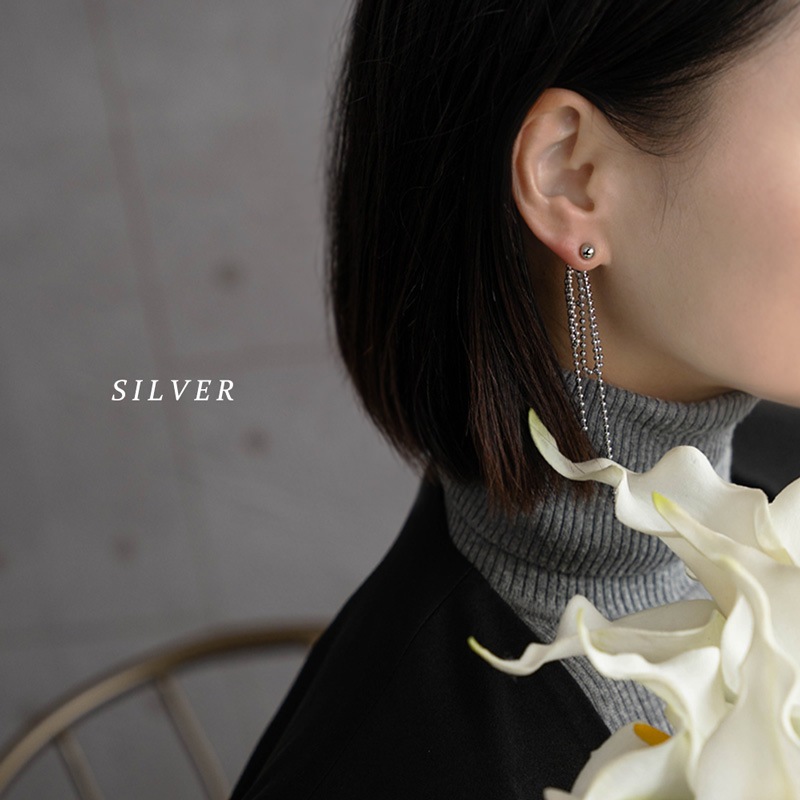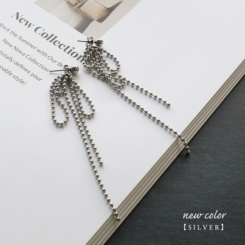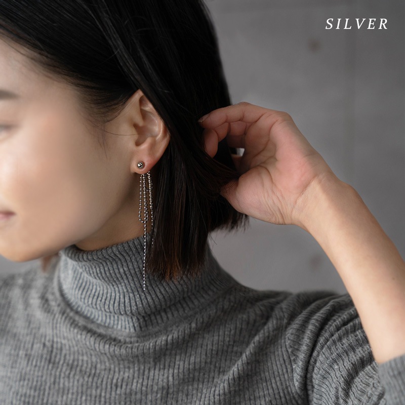 キャッチ側にリボンのように垂れ下がるボールチェーンをセットしたとってもオシャレなデザイン!