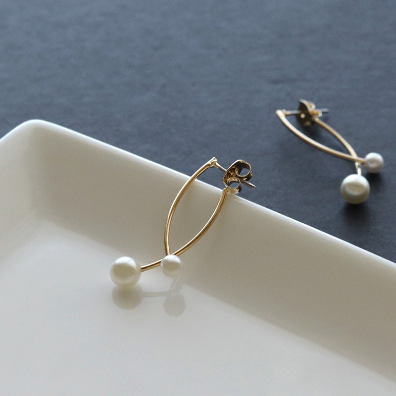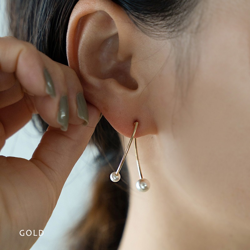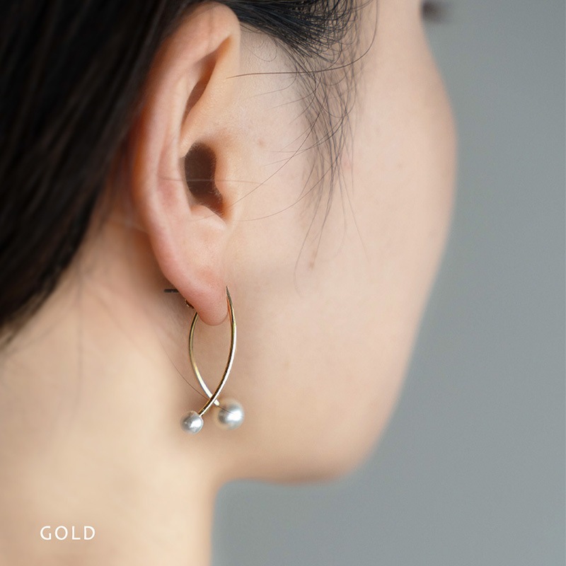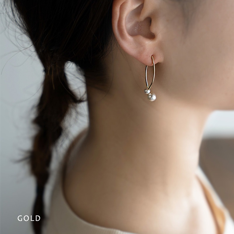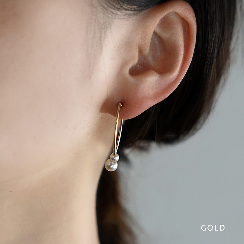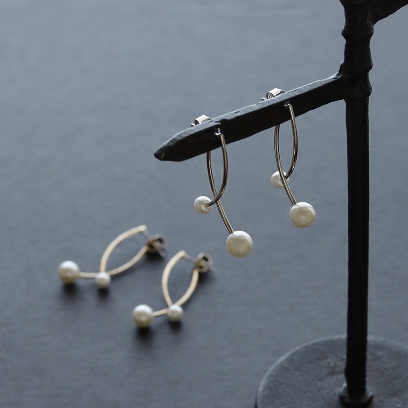 フロント側のピアスとキャッチではさむようなシルエットが特徴的なパールピアスです。