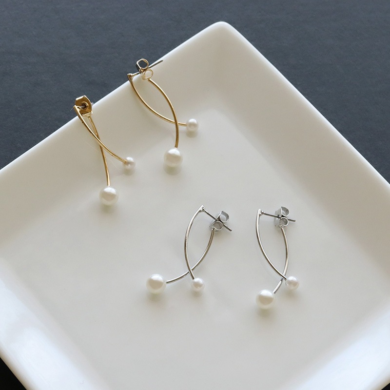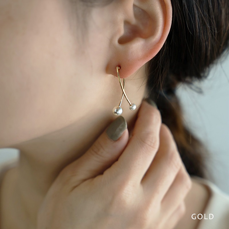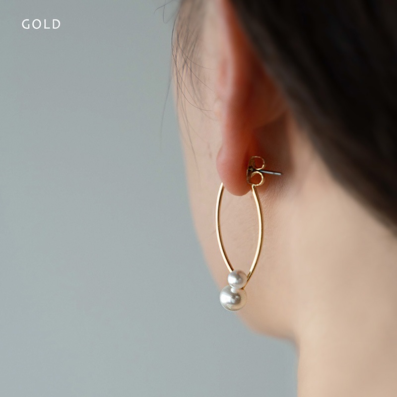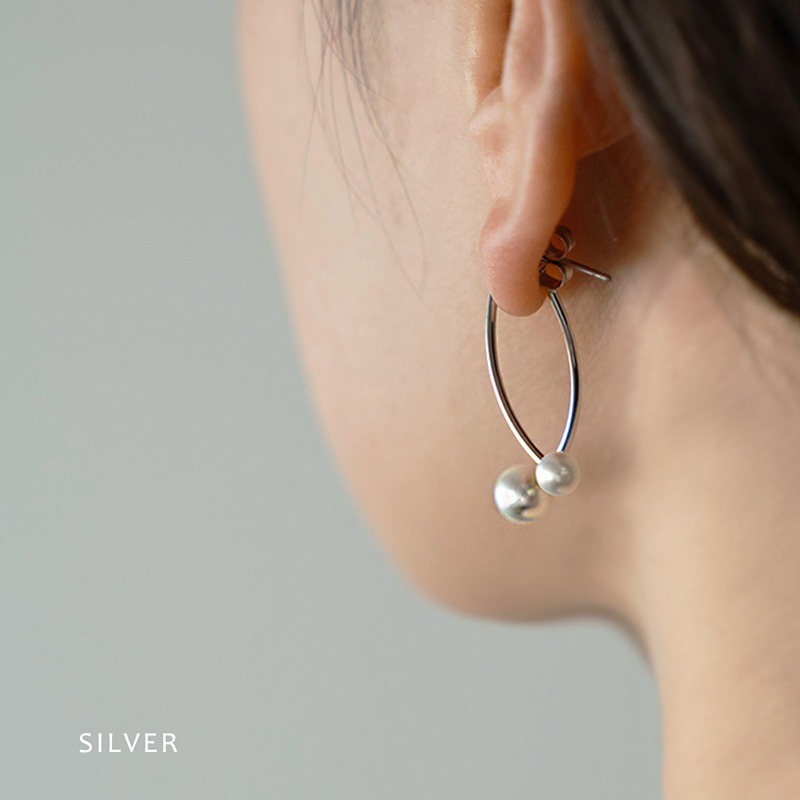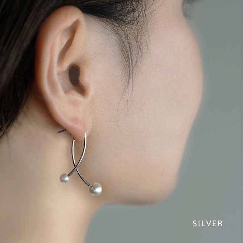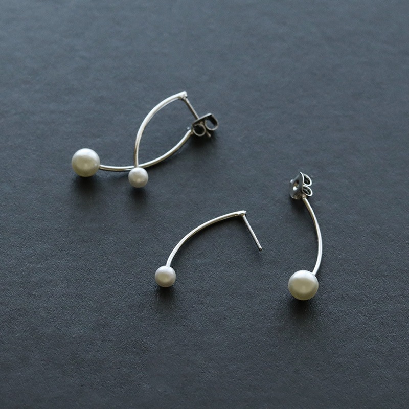 フロント側のピアスとキャッチではさむようなシルエットが特徴的なパールピアスです。