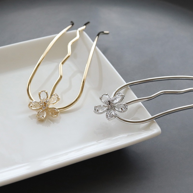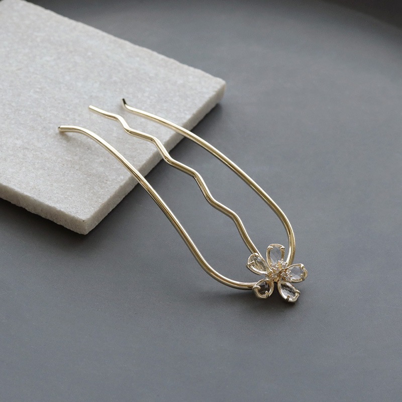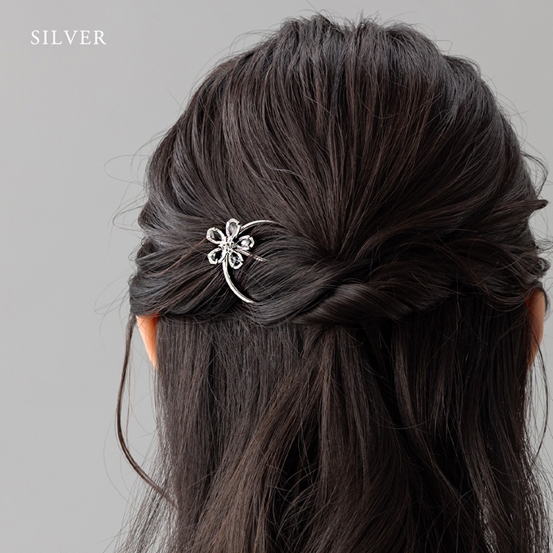 光の反射でさりげなく煌めくクリアストーンが美しいフラワーモチーフのヘアコームです。