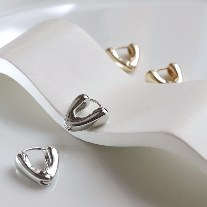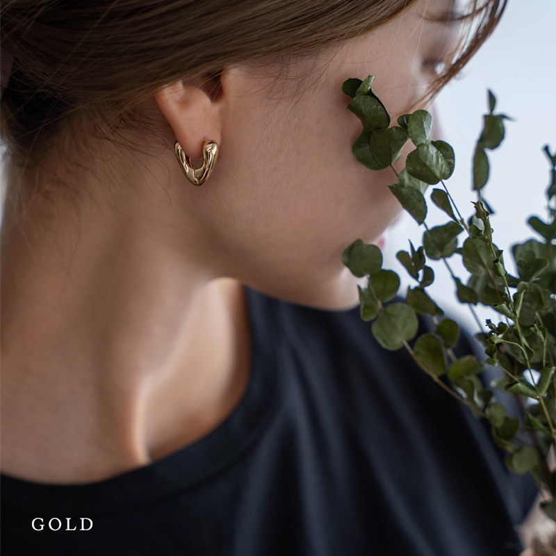 ぷっくりとした艶やかなメタルの質感と程良い重厚感が耳元に映えるハート型のピアスです。