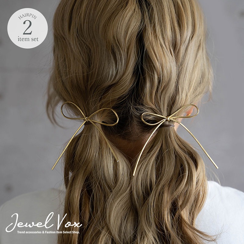 細めのリボンがモチーフになったU字ピンの2本セットです。