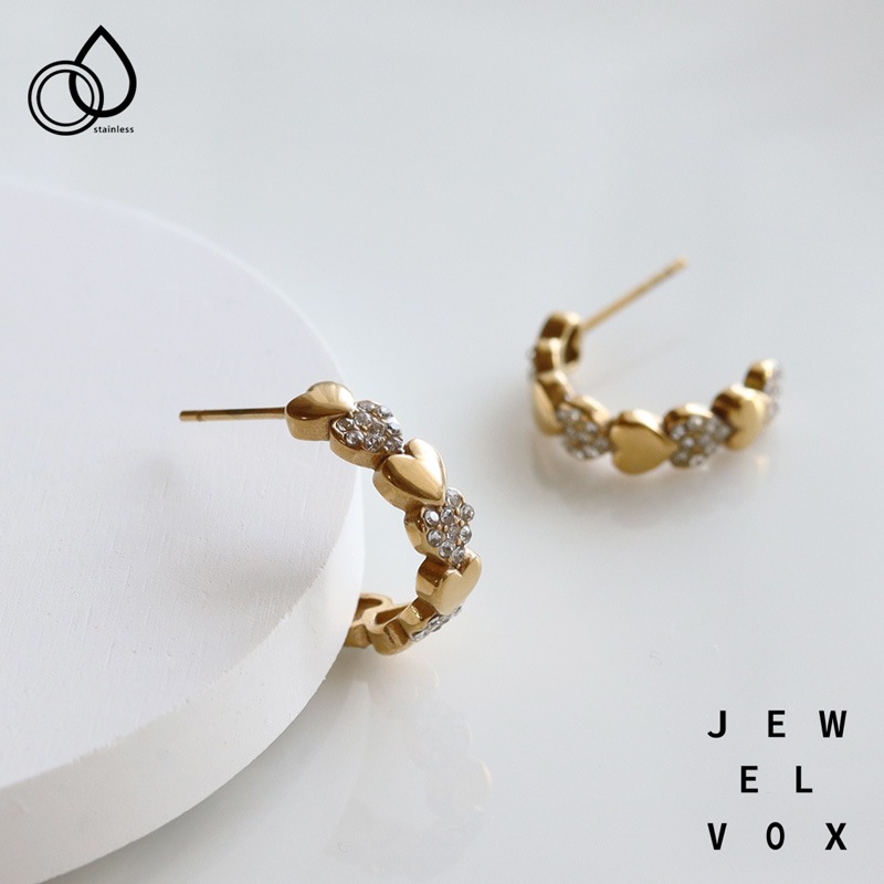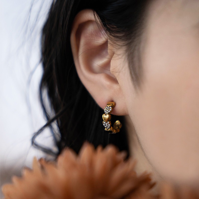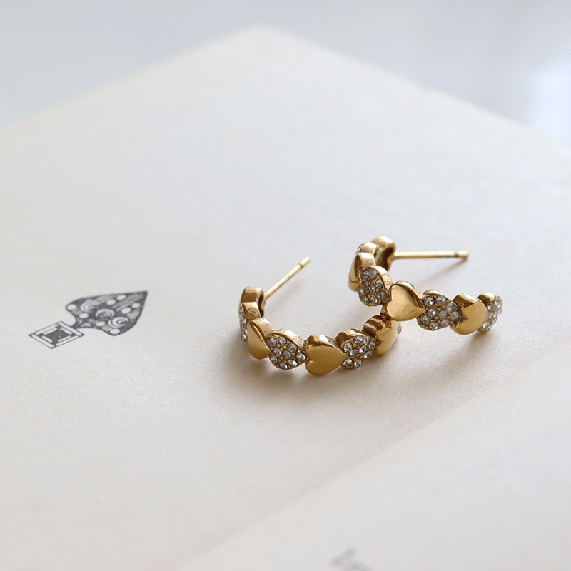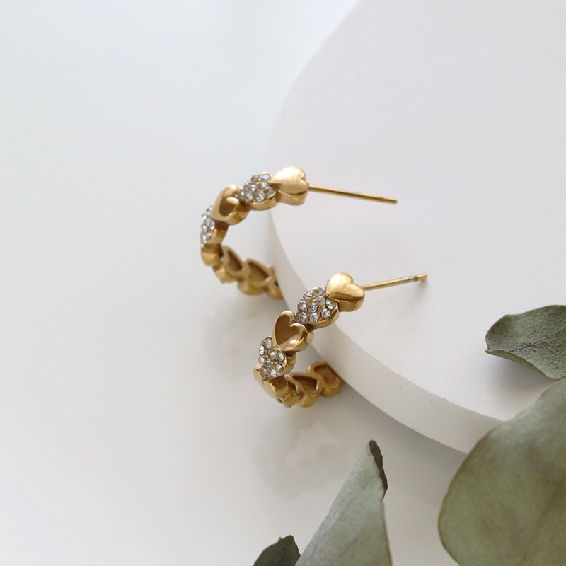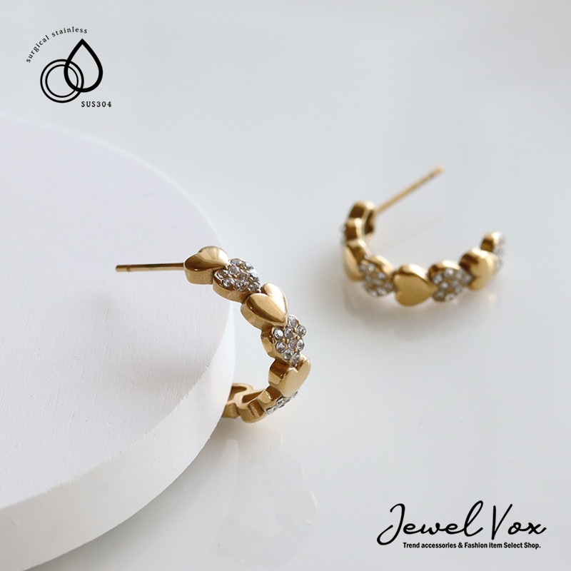 ラインストーンを埋め込んだパヴェタイプと艶感のあるメタルハートを交互に合わせたハーフフープ。