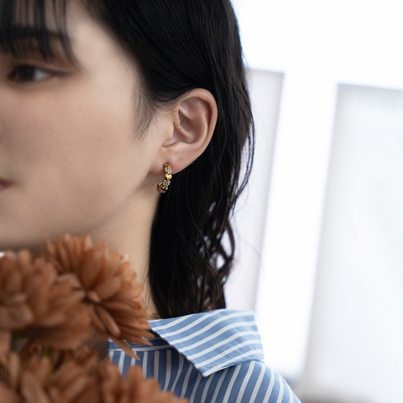 程よい存在感と美しい煌めきが耳元に映え、上品な華やかさを演出してくれます。