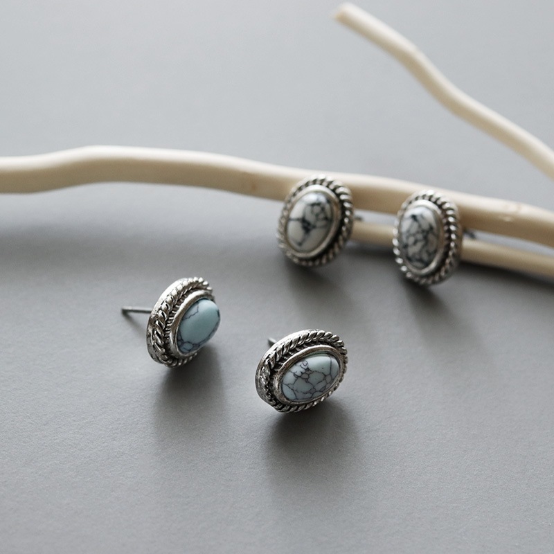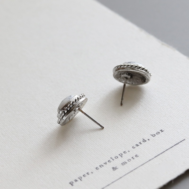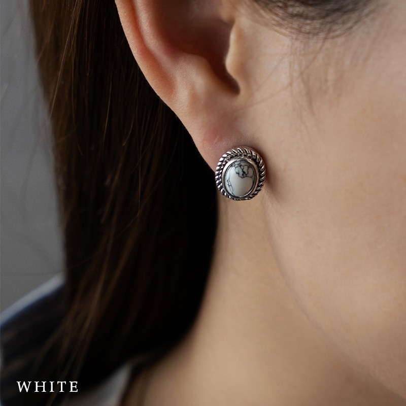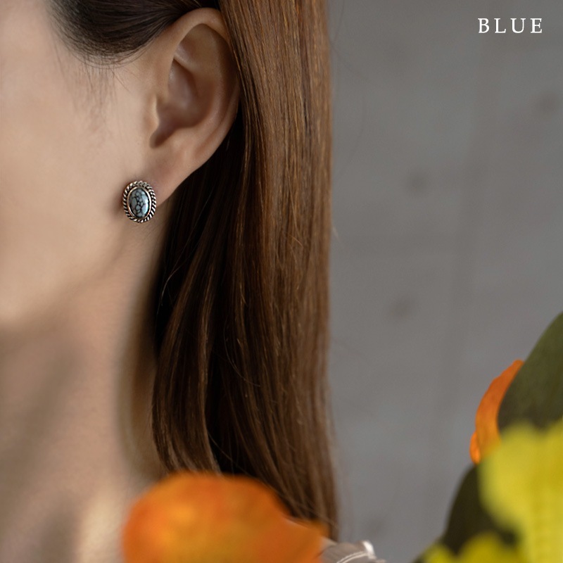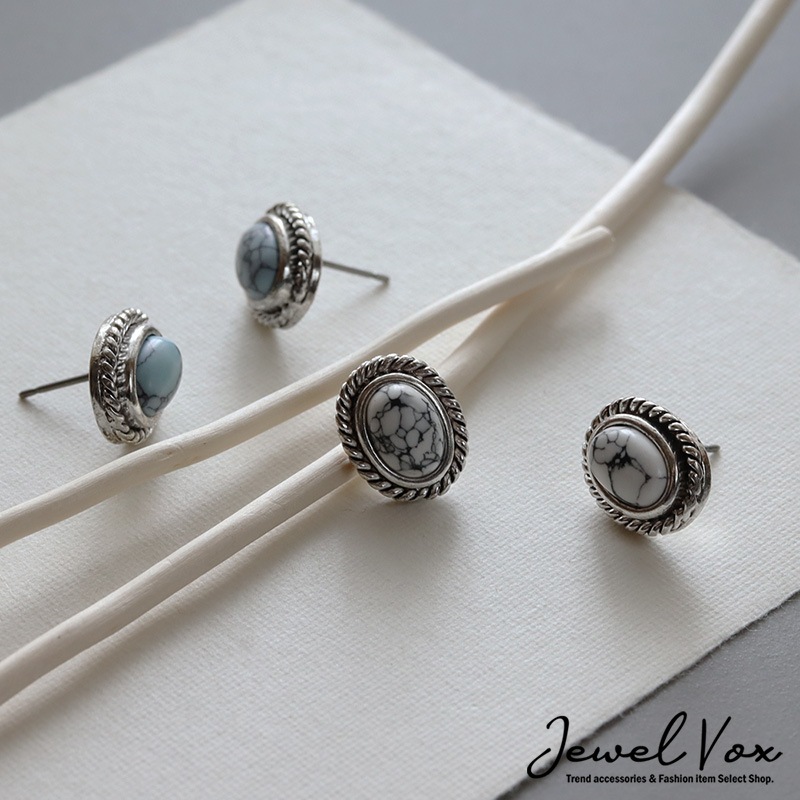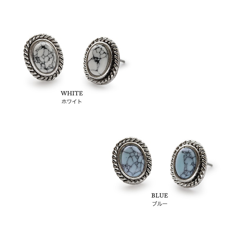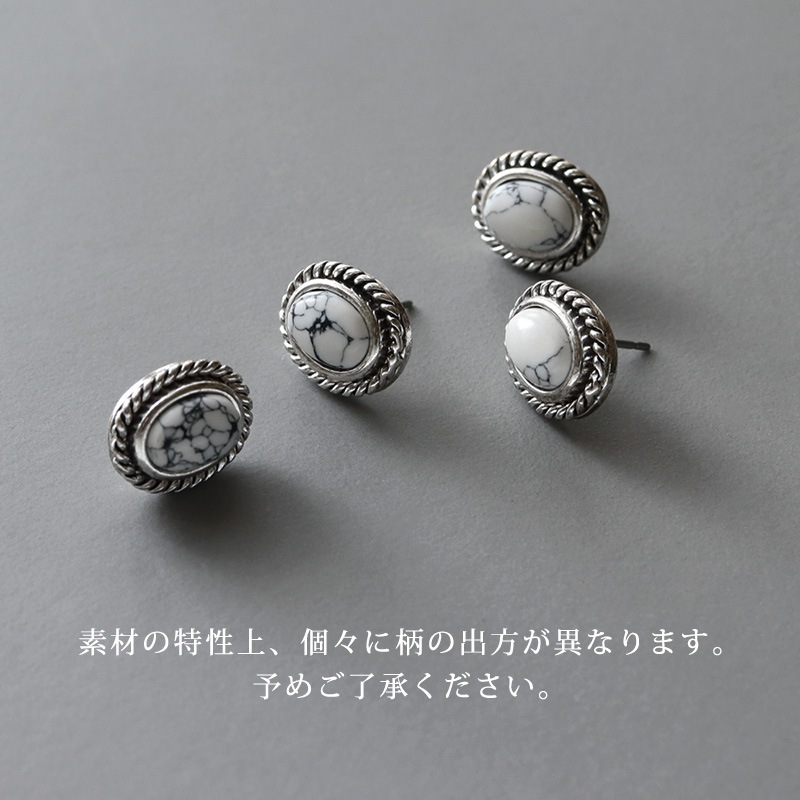 まるで天然石のような一つ一つ表情が異なるマーブル模様のアクリルストーンをセットしたピアスです。