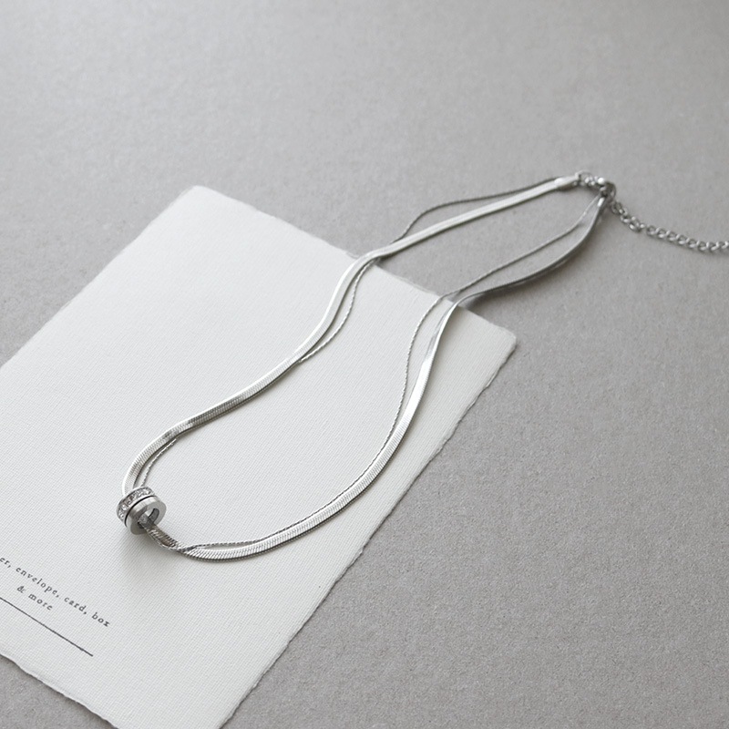 華奢なチェーンとフラットな平スネークチェーンを合わせ、トップには煌めくキュービックジルコニアを埋め込んだ