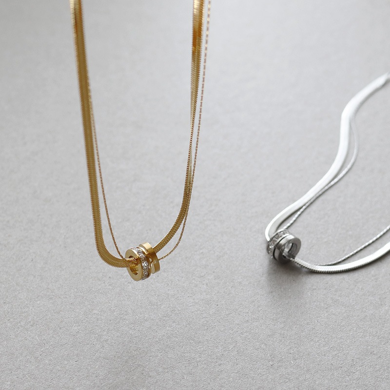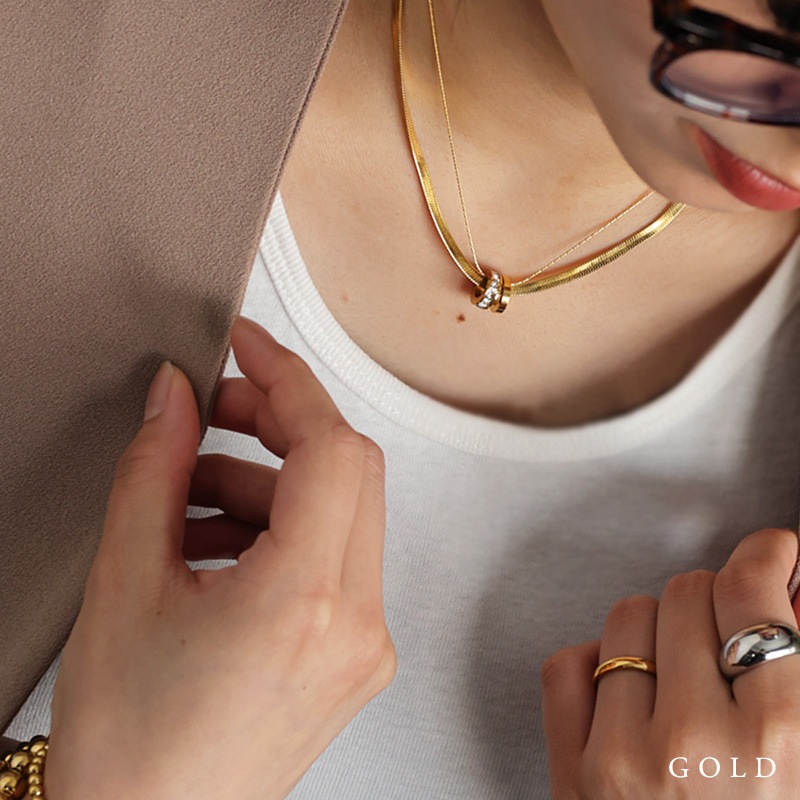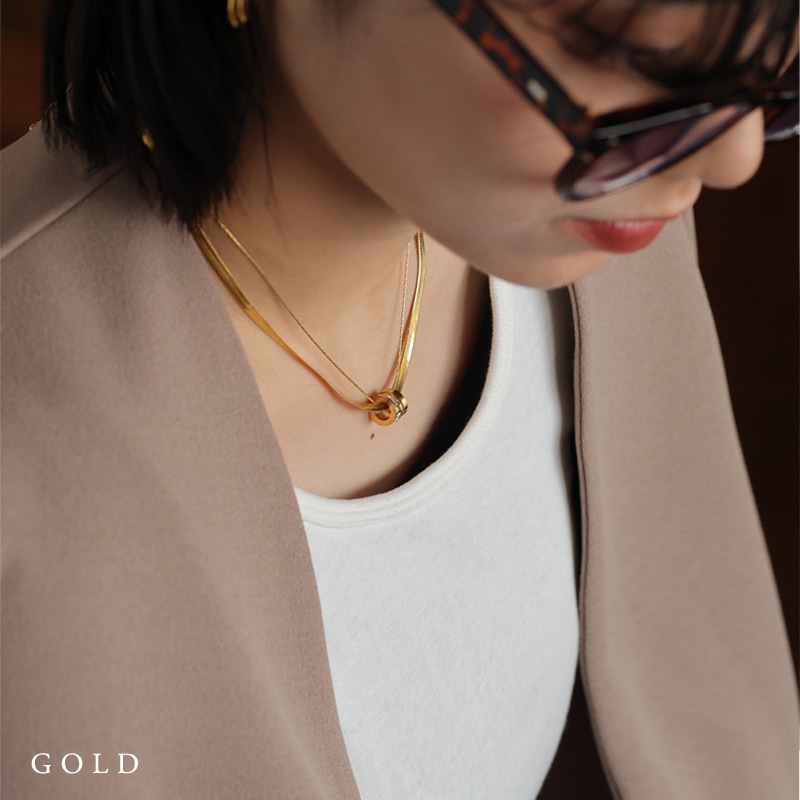 2つのリングは固定されていないので、外すことも可能でシンプルに2連のチェーンネックレスとしても使える優秀アイテムです!