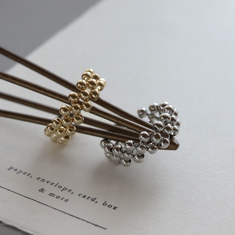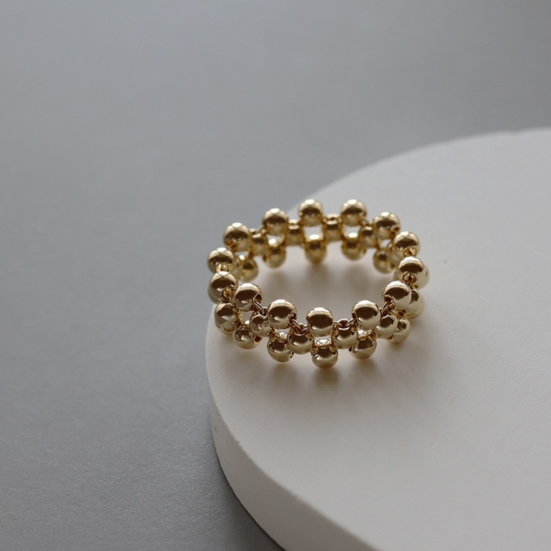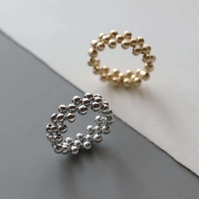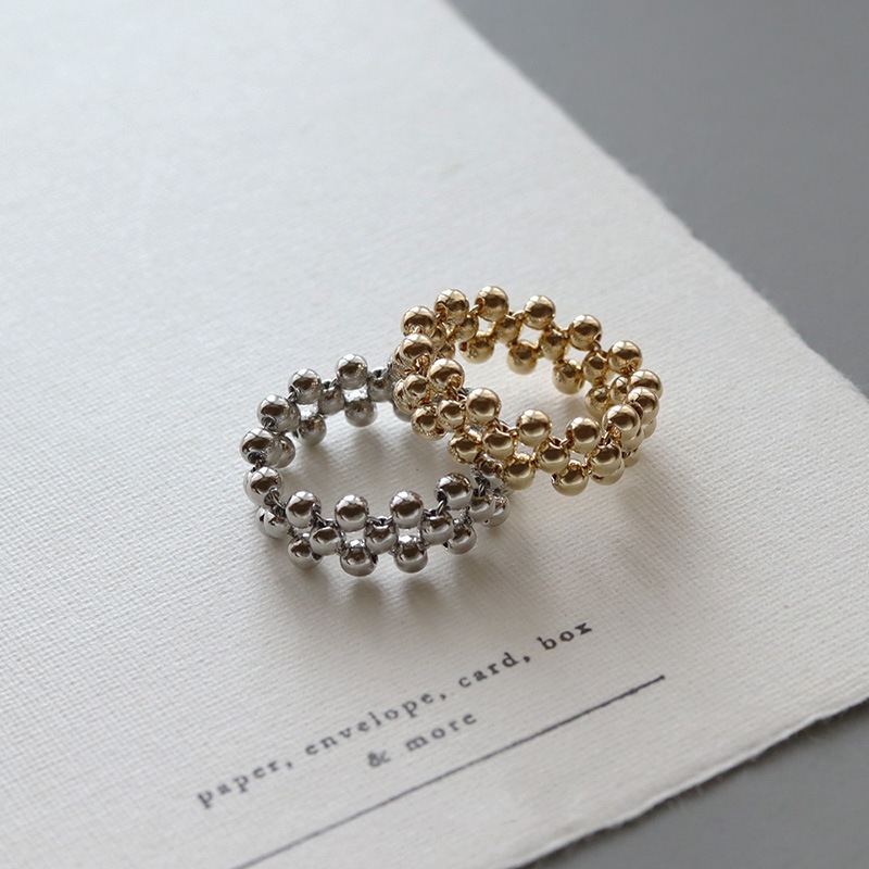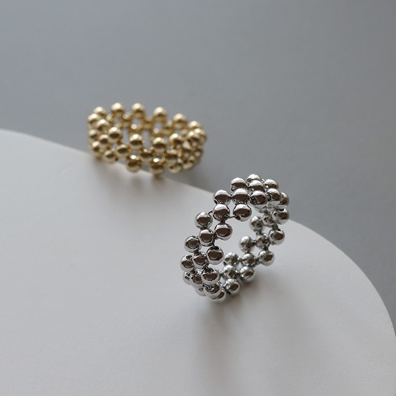 小さなボールビーズをクロス編みにしたリングです。