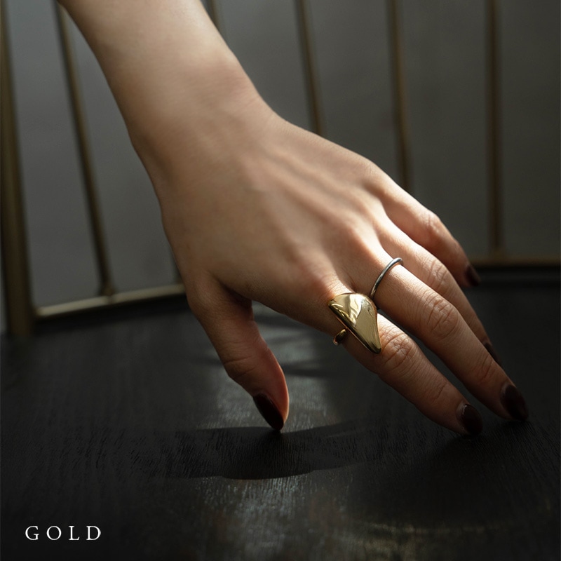 指になじむ緩やかなカーブによってメタルの艶やかな質感が映えるデザイン。