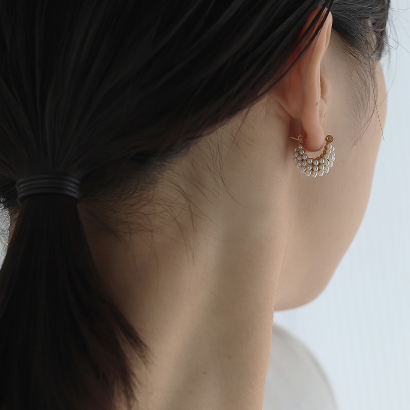 着けたときに耳に沿うカーブラインがなじみやすく、さりげない華やかさを演出してくれます。