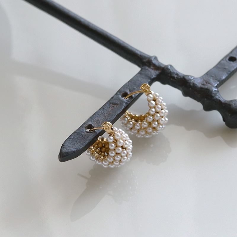 ぷっくりとしたドロップフォルムに小粒のパールを敷き詰めた上品な可愛らしさが映えるデザイン。