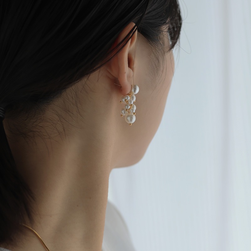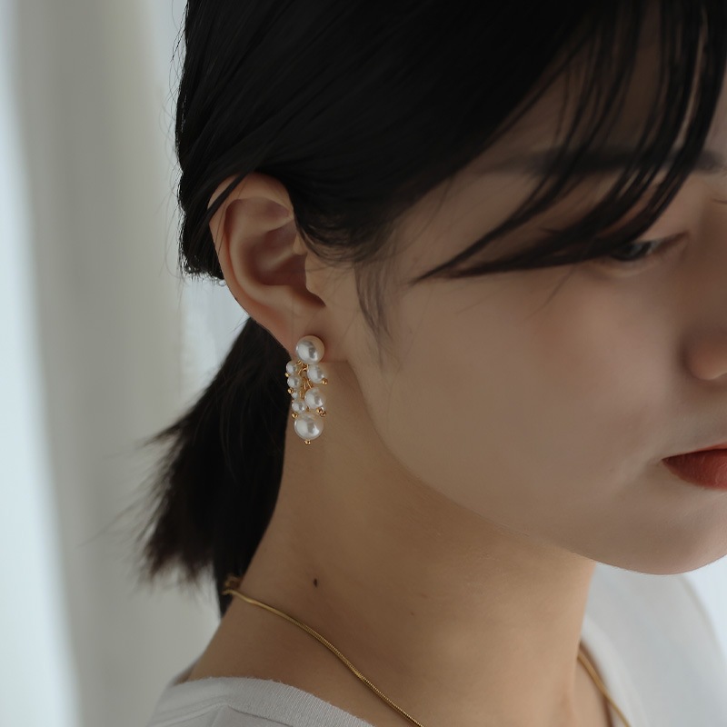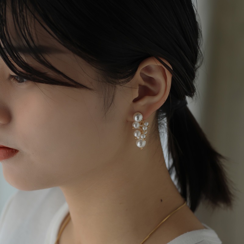 ふとした仕草で揺れるパールが耳元に映え、上品な華やかさを演出してくれます。