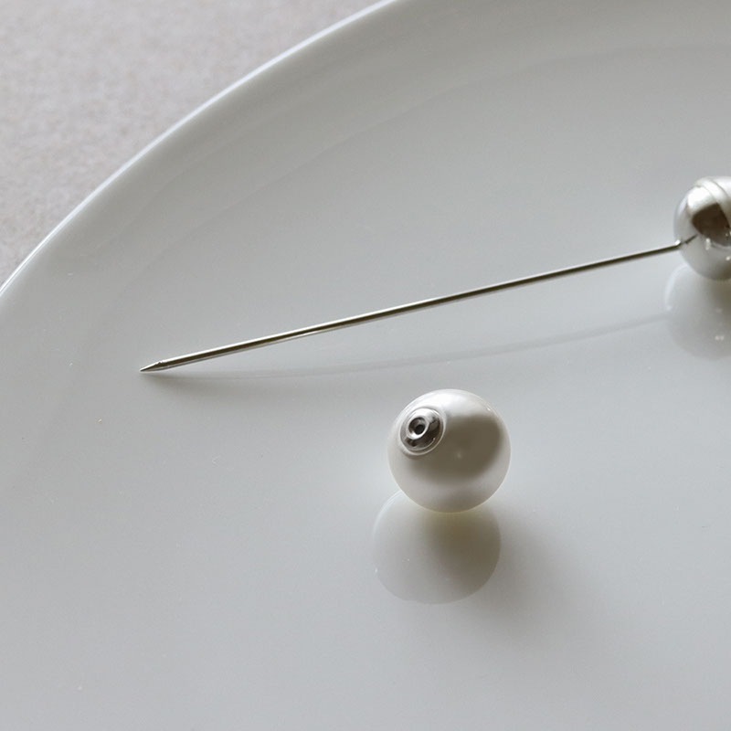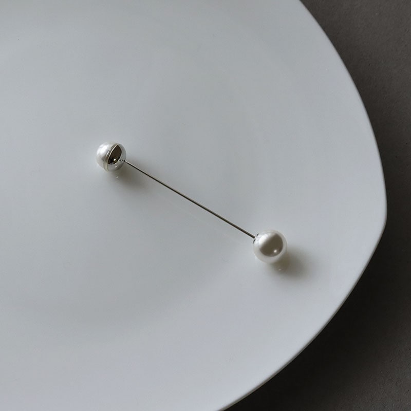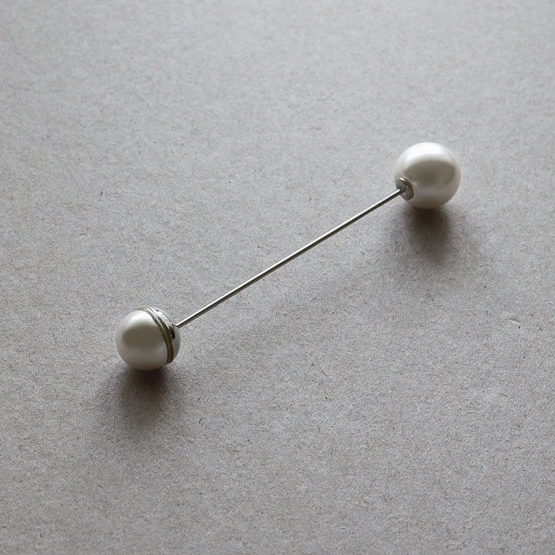 シルバーピンの両端に艶やかな一粒パールを合わせた上品なシンプルデザイン。