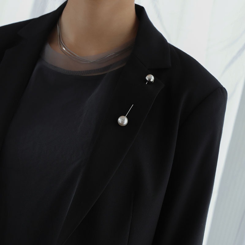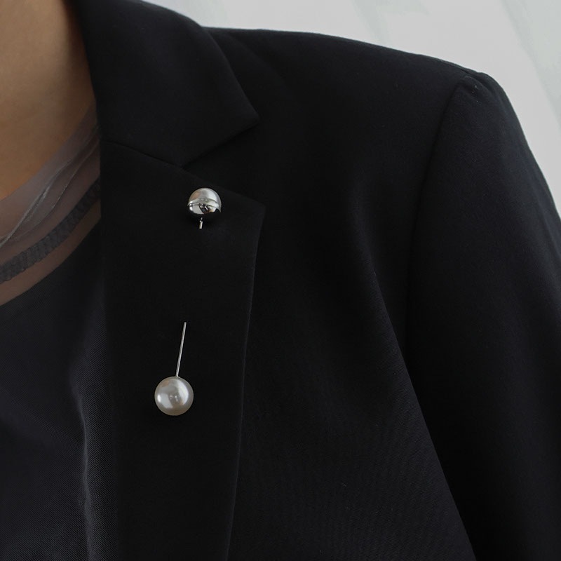 コーデのアクセント使いにぴったりなパールのピンブローチです。