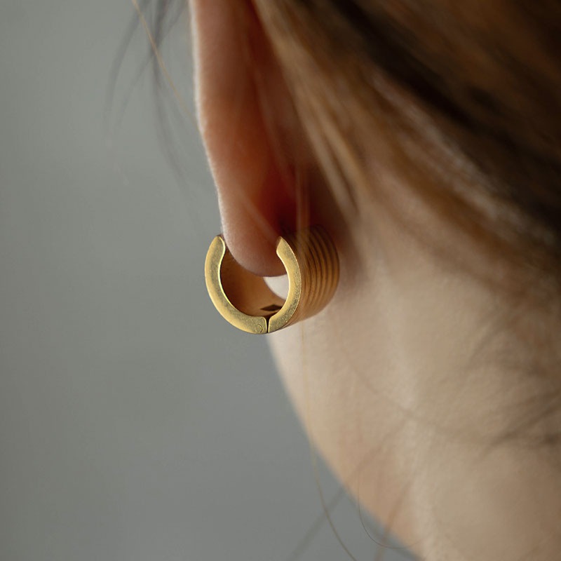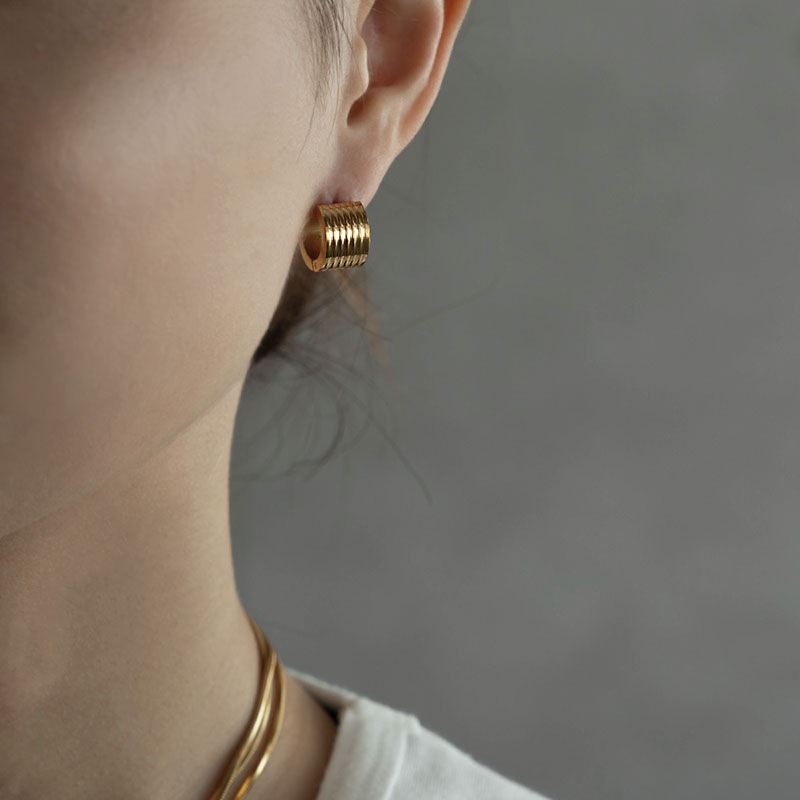 大人の魅力を引き立てるゴールドの輝きが耳元に映え、シンプルなのでどんなコーデにも合わせやすいデザインです。