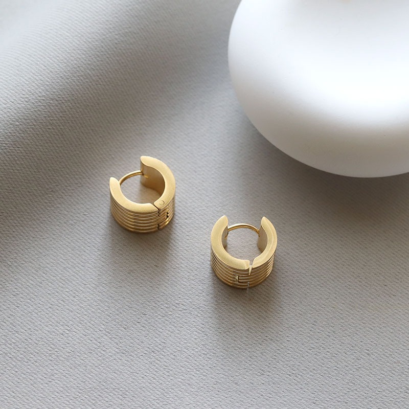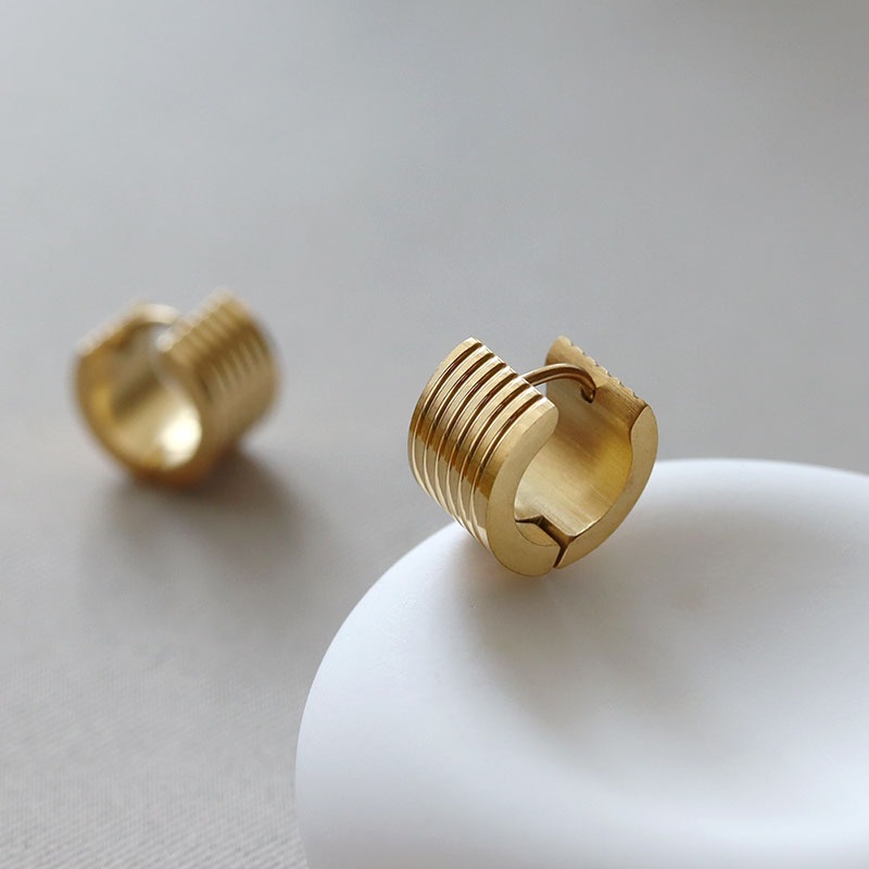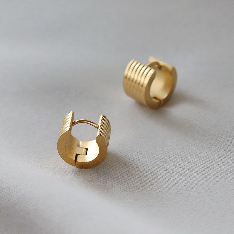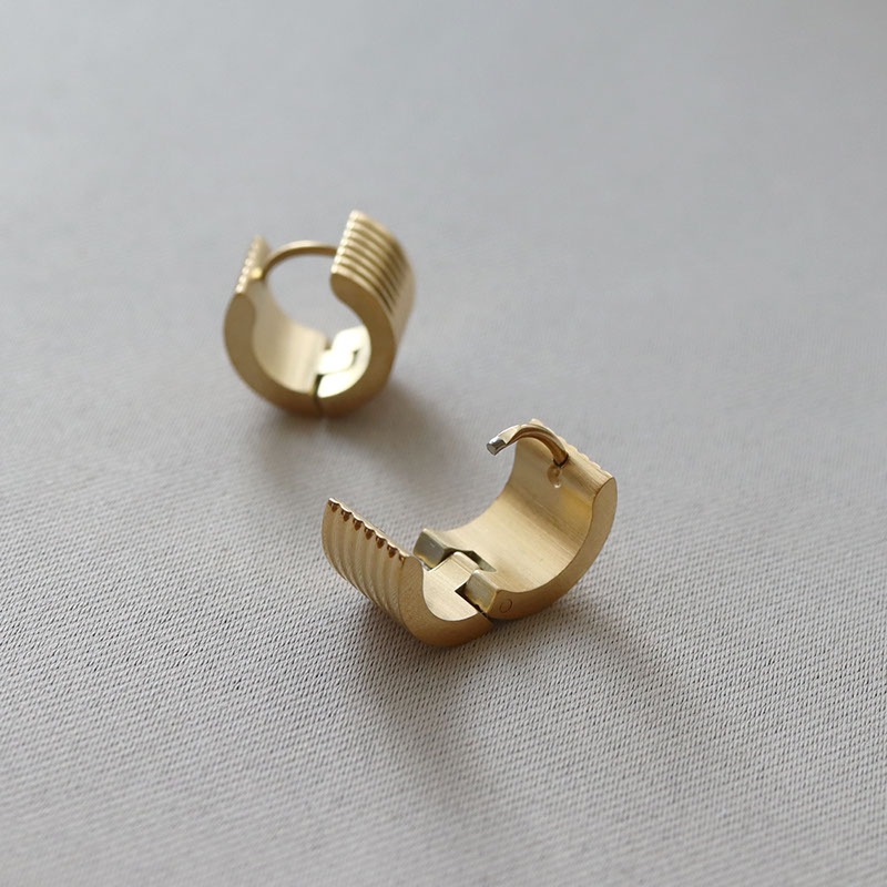 ストラップの型押し加工を施した幅広タイプのフープピアス。