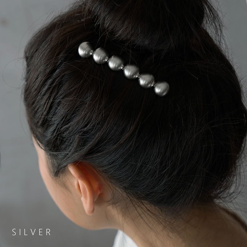- ころんとした丸いハーフボールが並んだバレッタです。