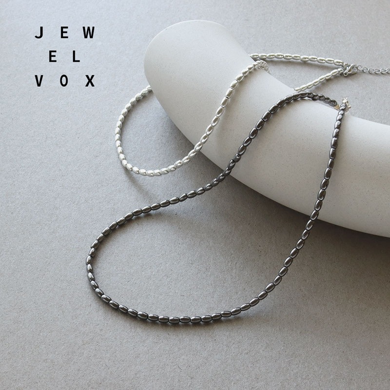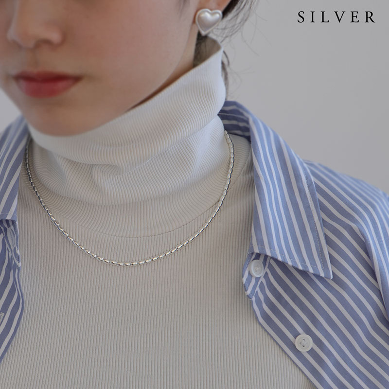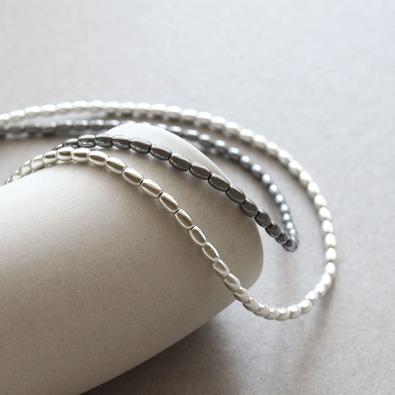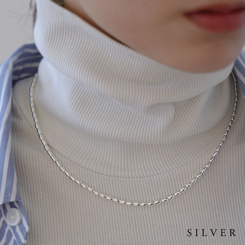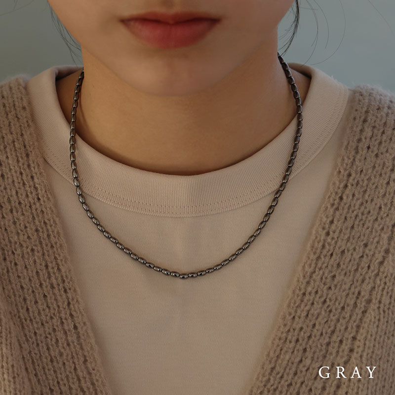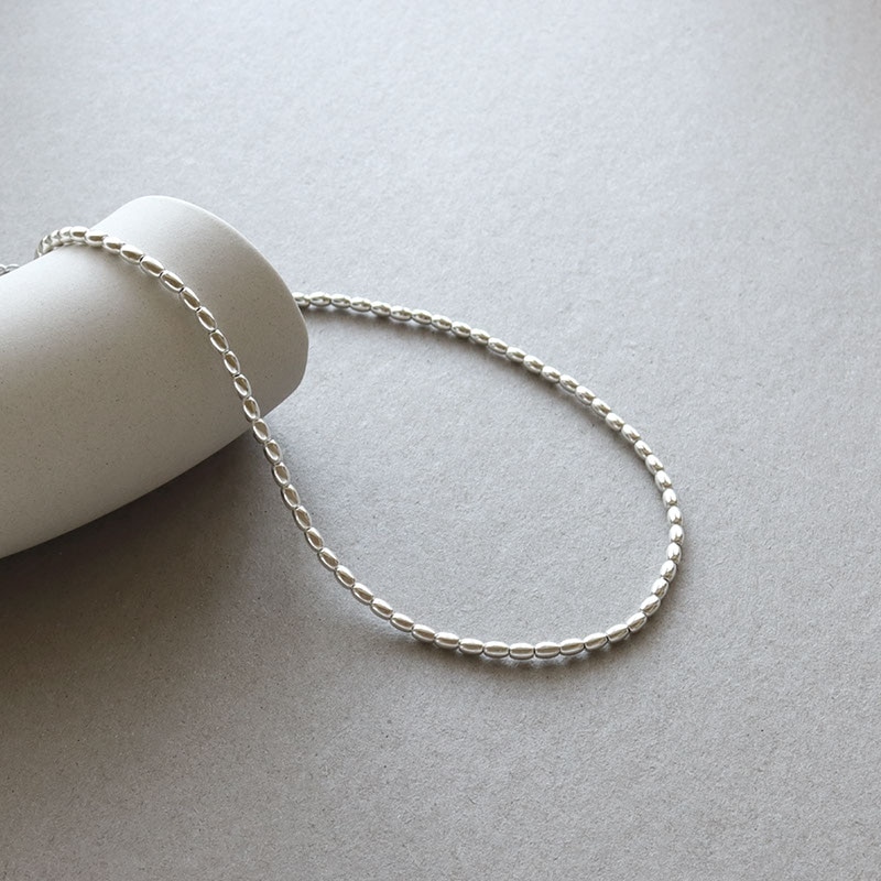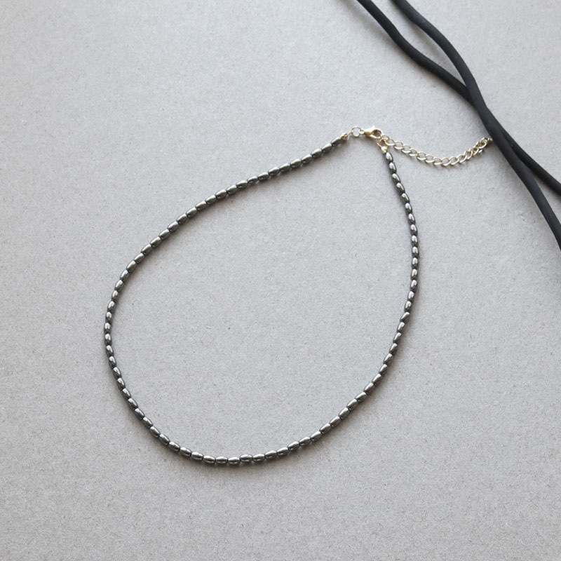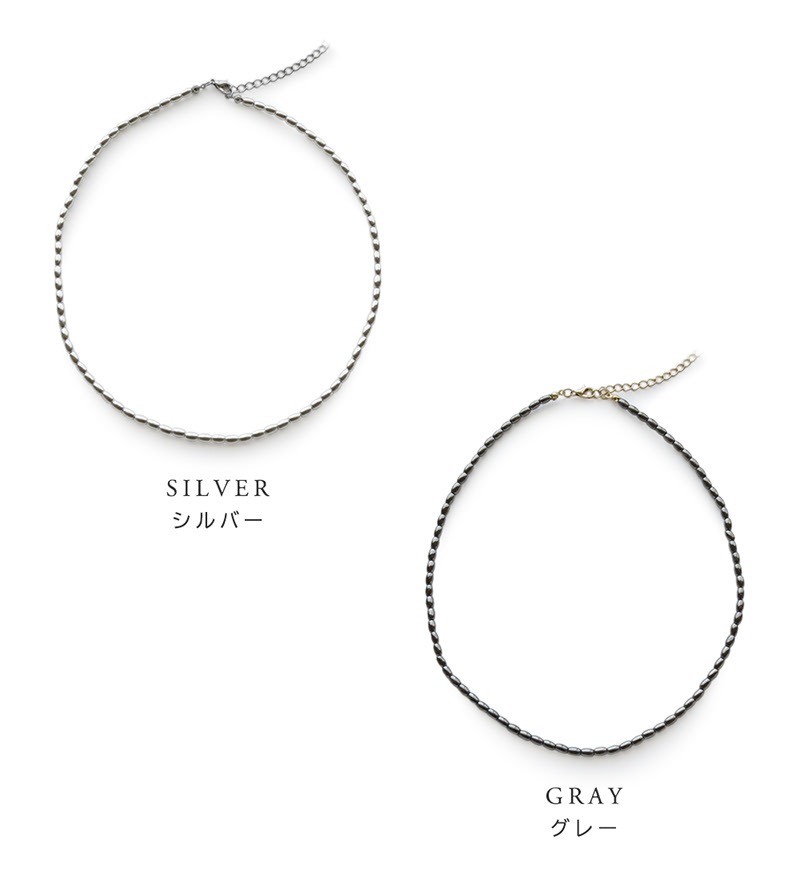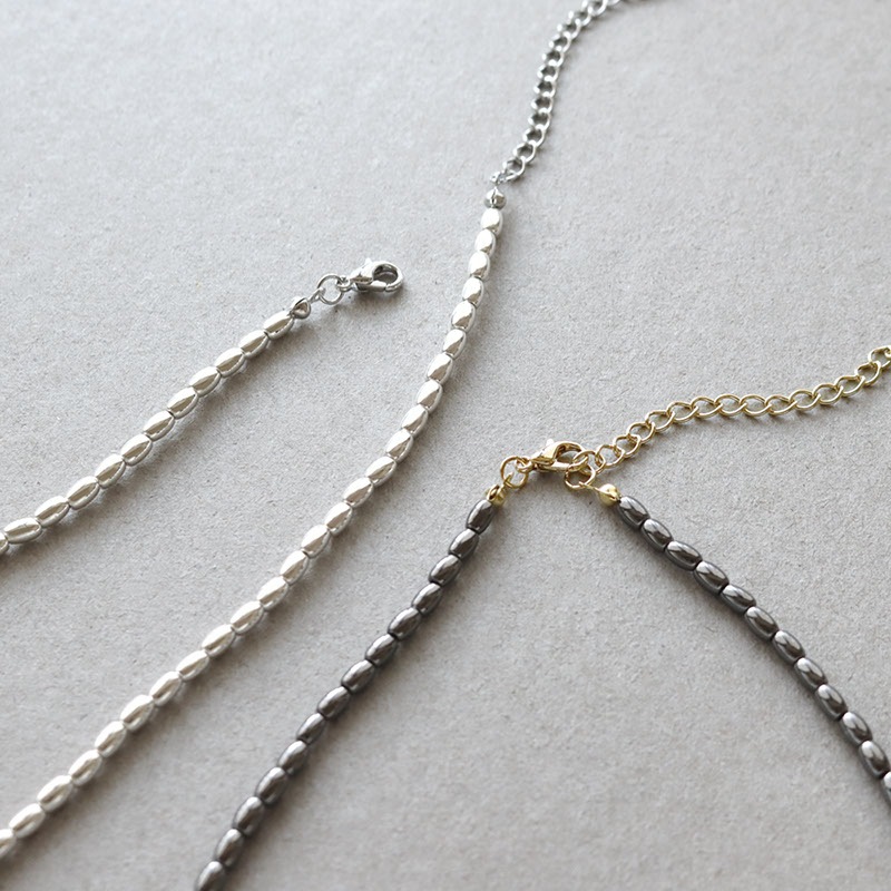 - ライス型のメタルビーズを連ねたショートネックレスです。