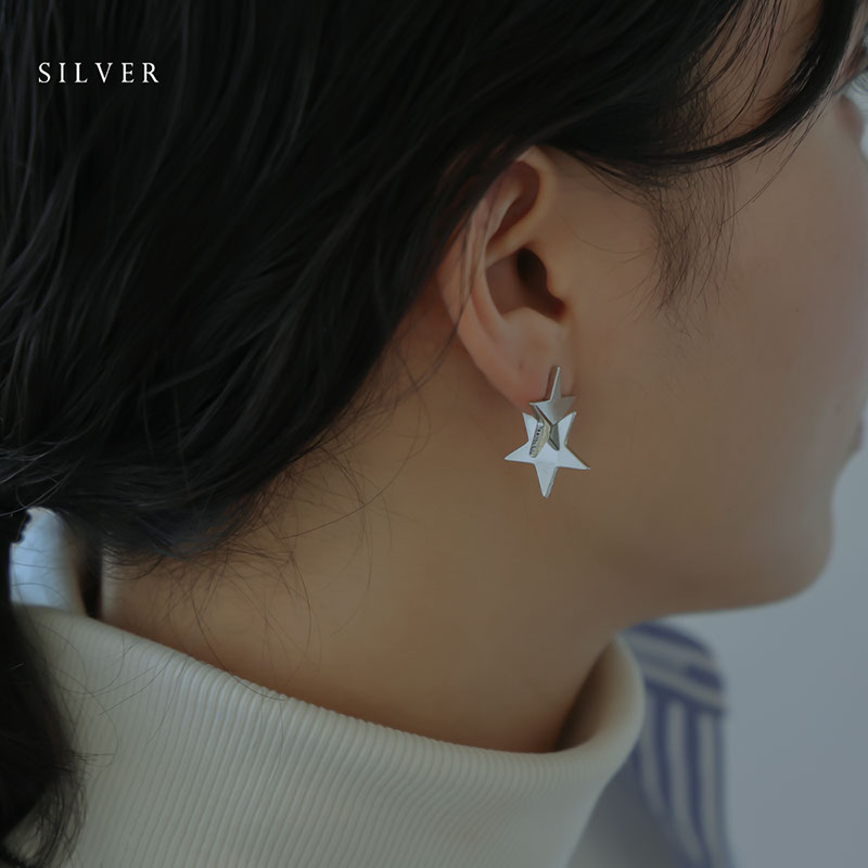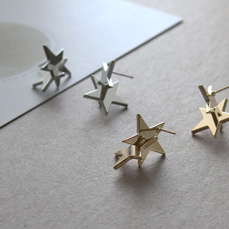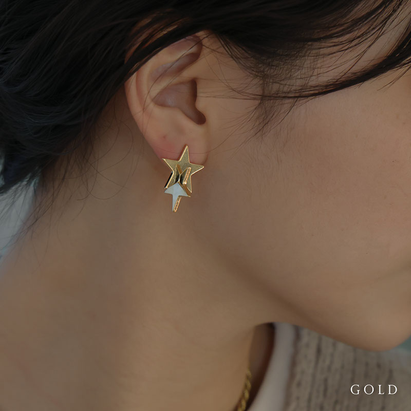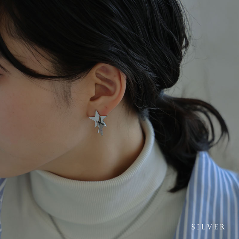 - 2つのスター型プレートを合わせたスタイリッシュなピアスです。