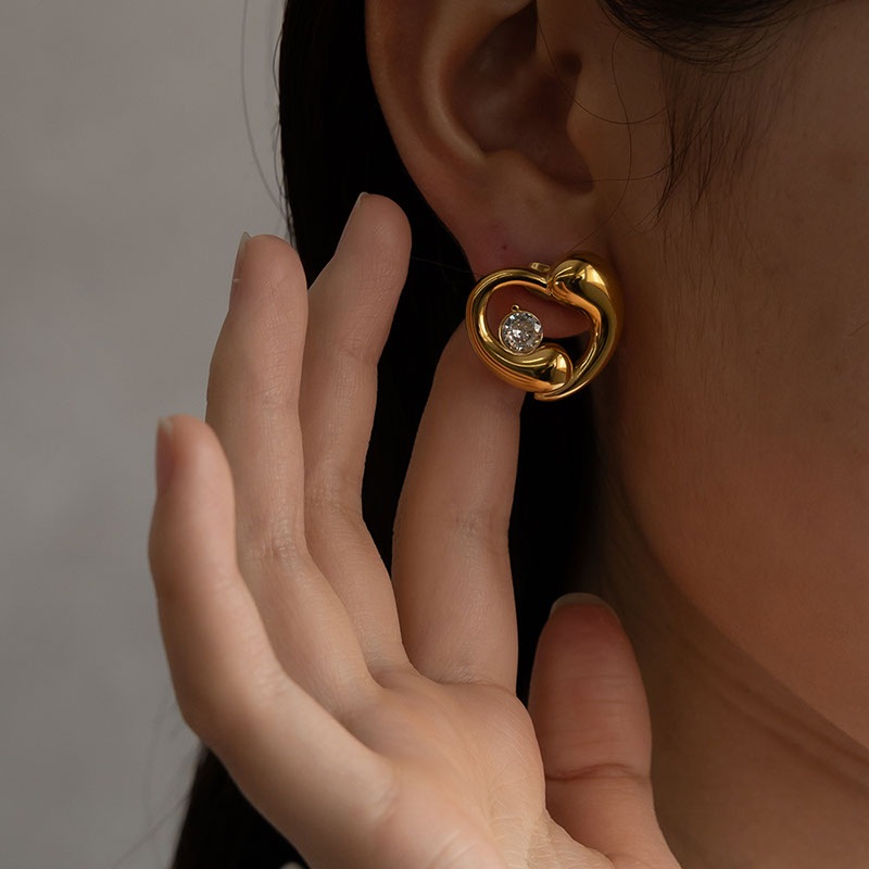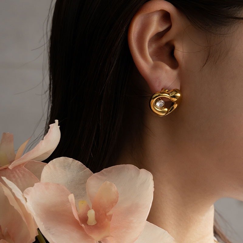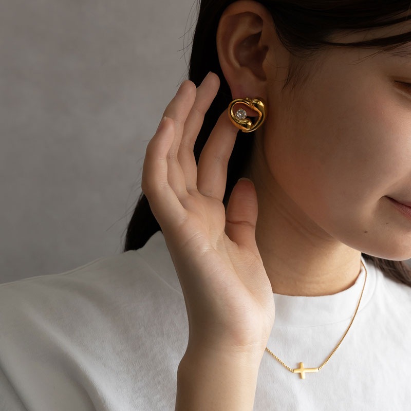 ぷっくりフォルムのオープンハートモチーフに、煌めくキュービックジルコニアが上品さを演出。