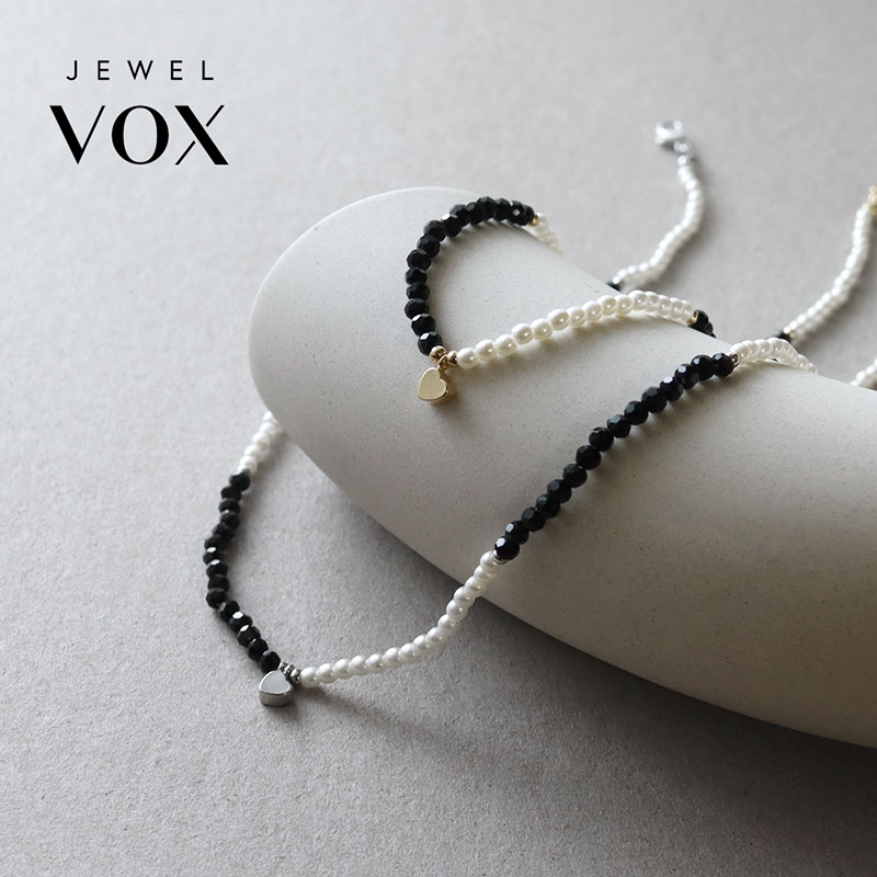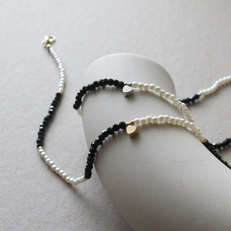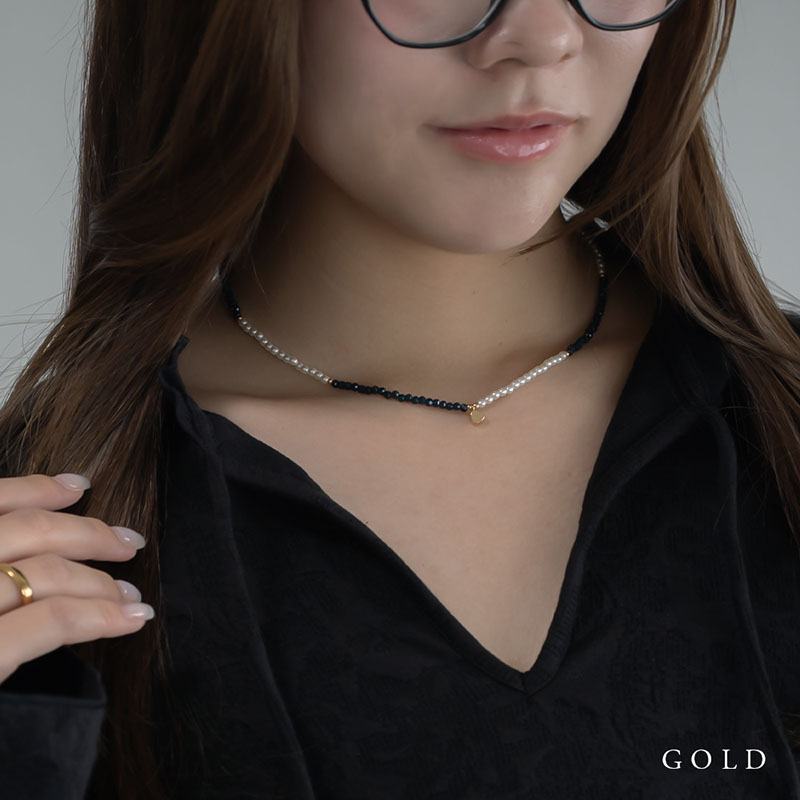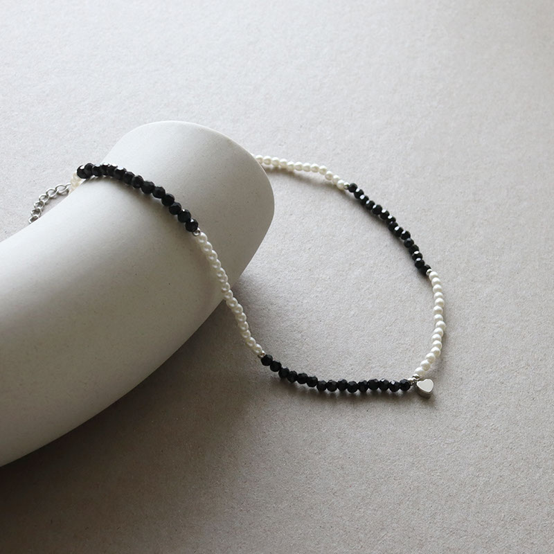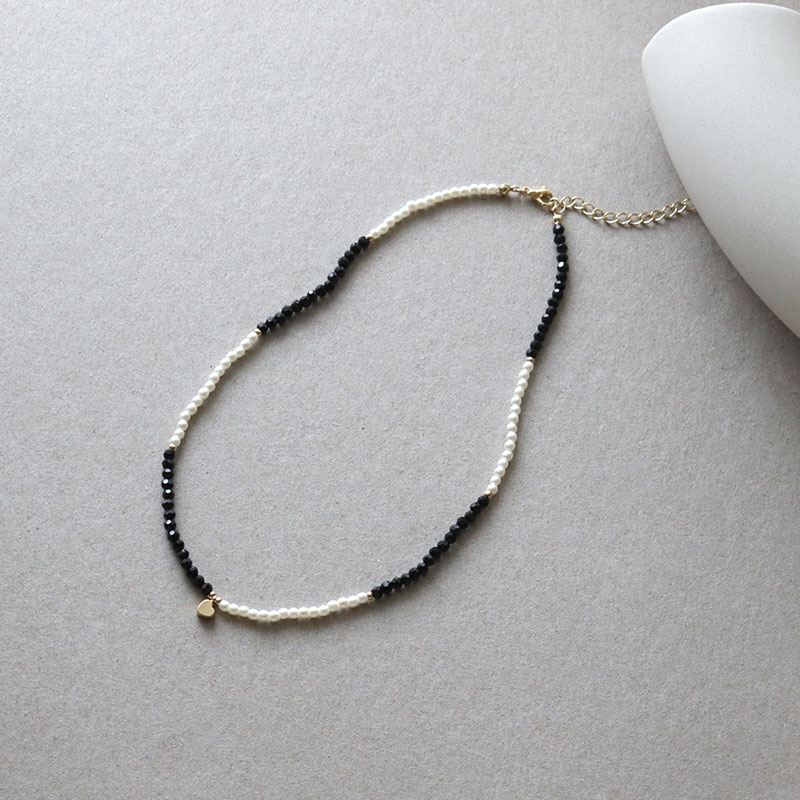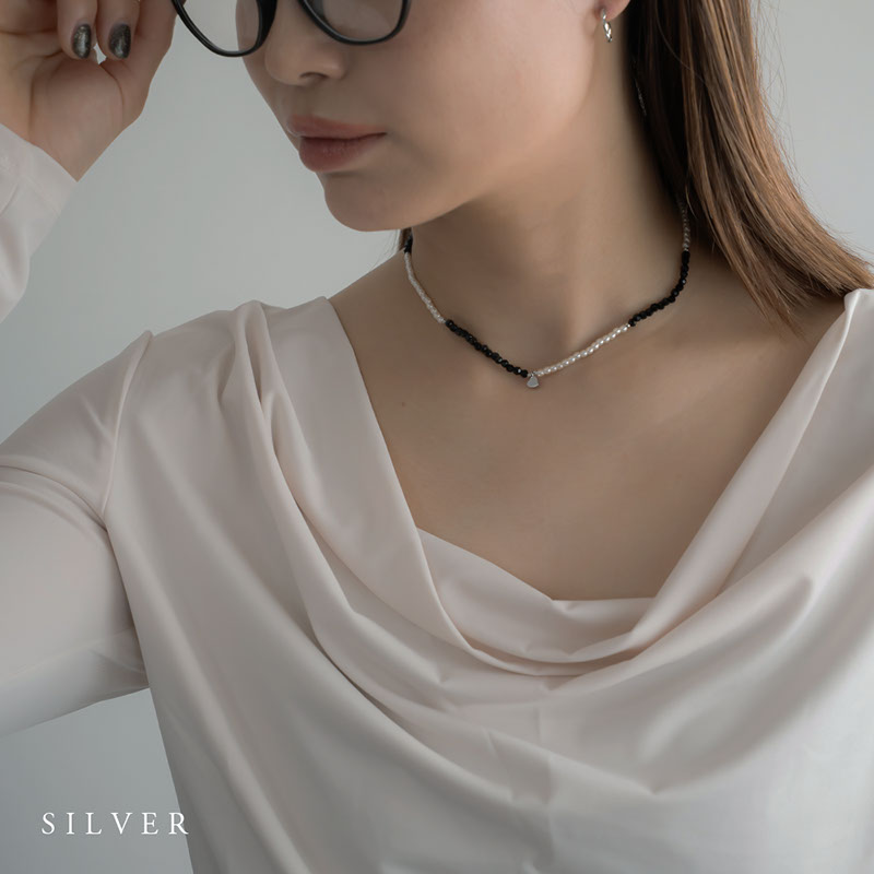 - 小粒のパールビーズとブラックのカットビーズを合わせたショートネックレスです。