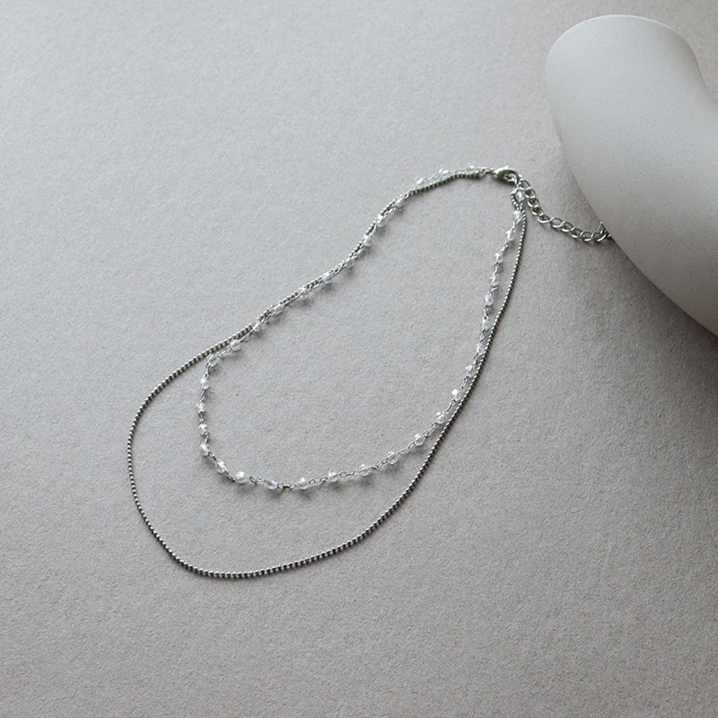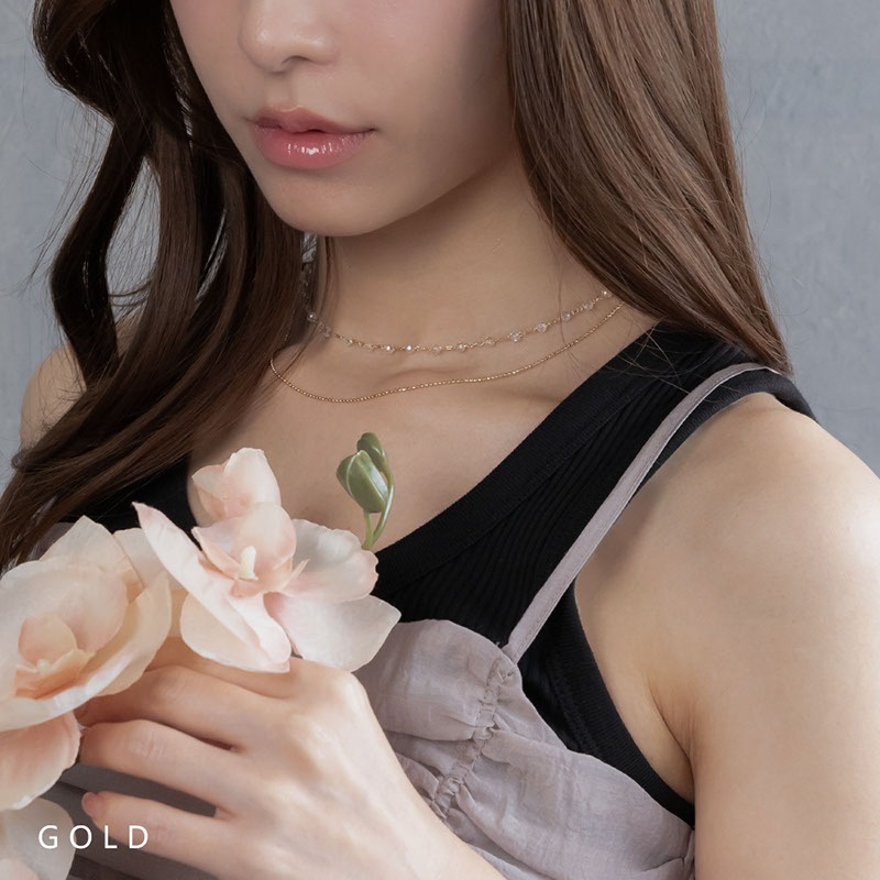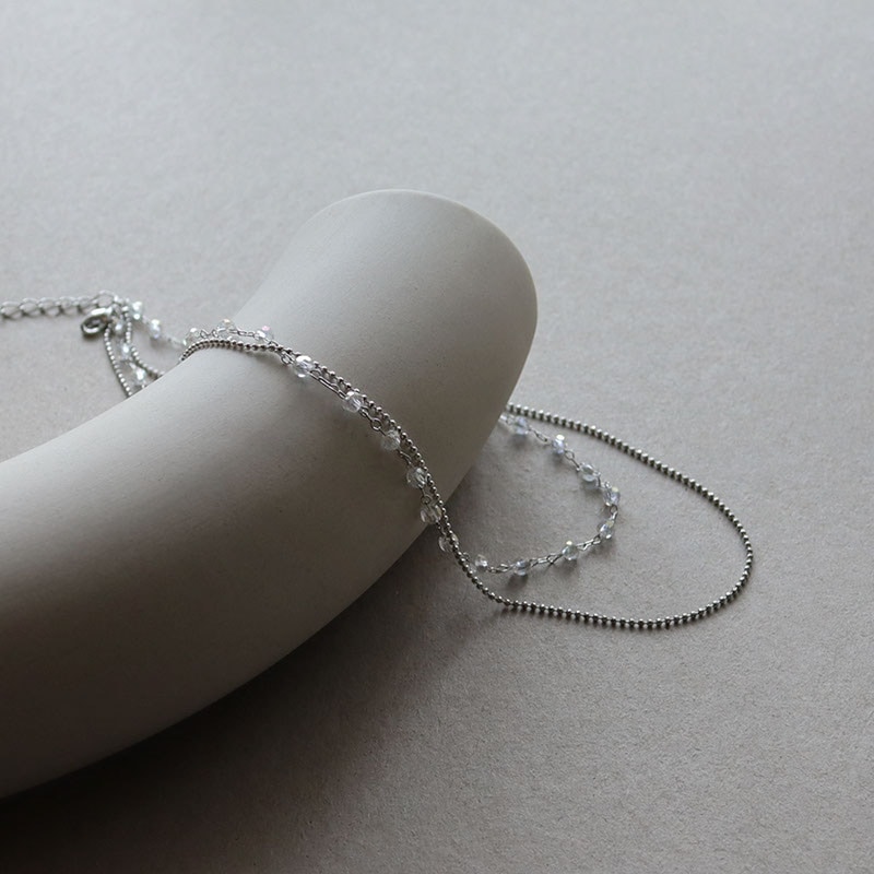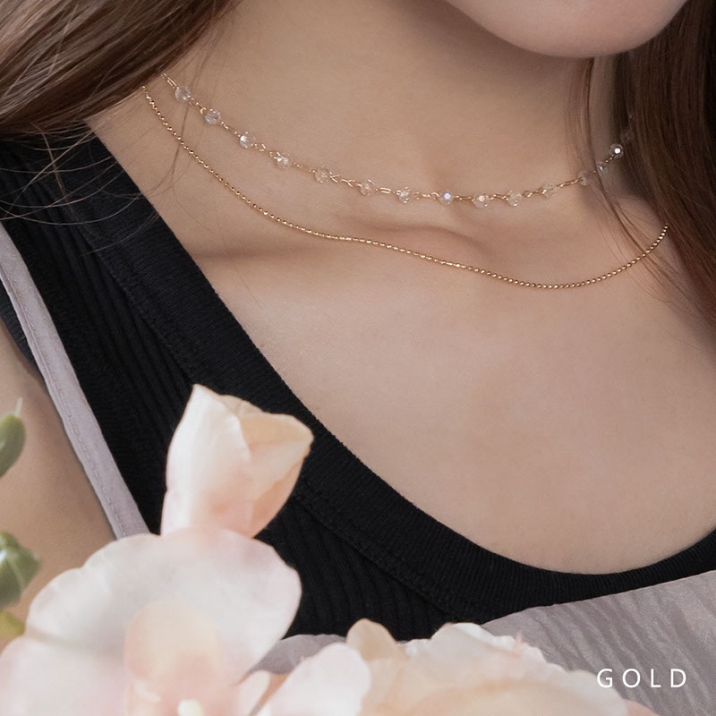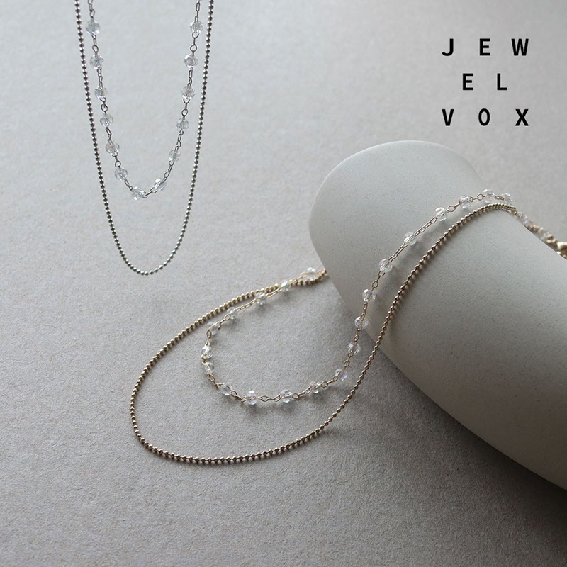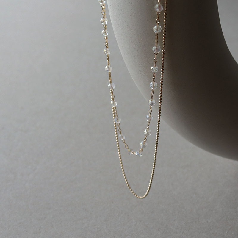 - 華奢なボールチェーンとカットビーズの2連ネックレスです。