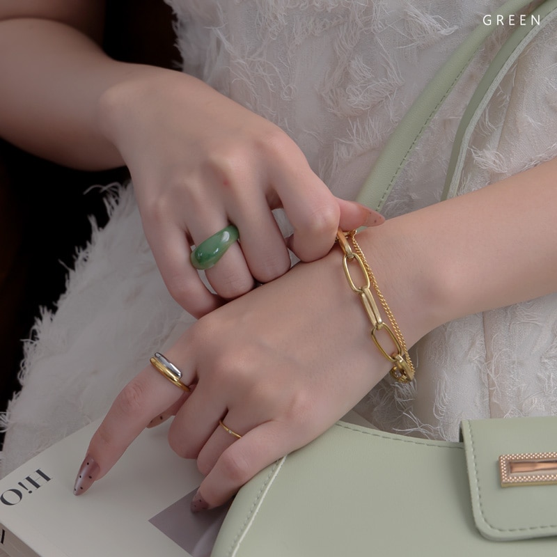 見た目よりも軽量な素材で負担も軽く、お手持ちのリングとの重ね付けもおすすめです。