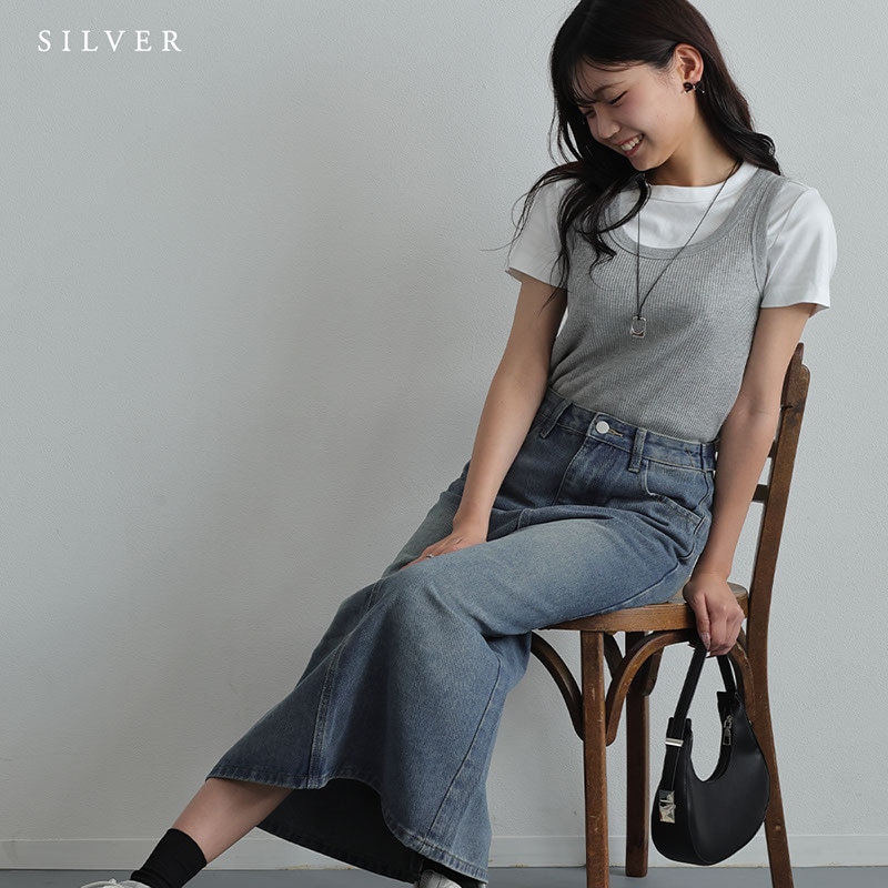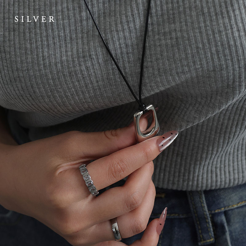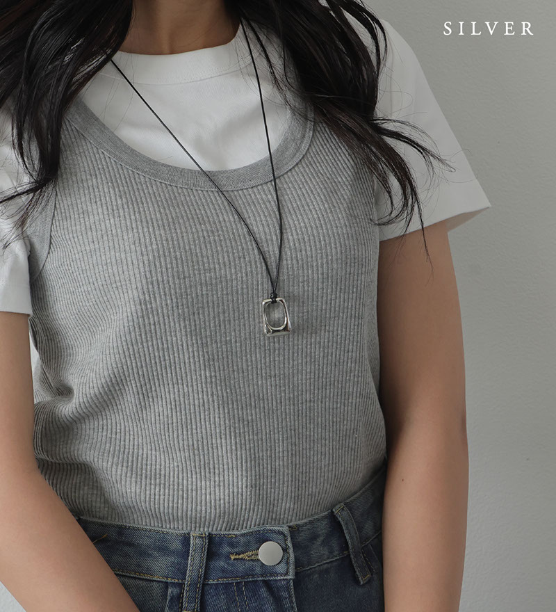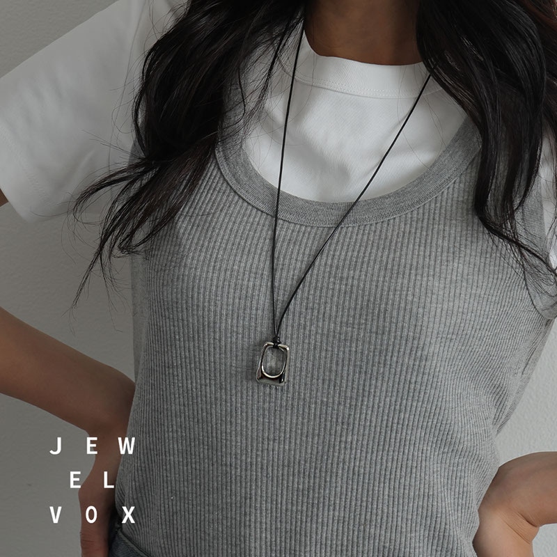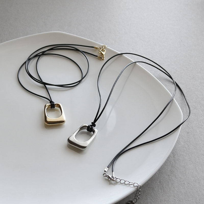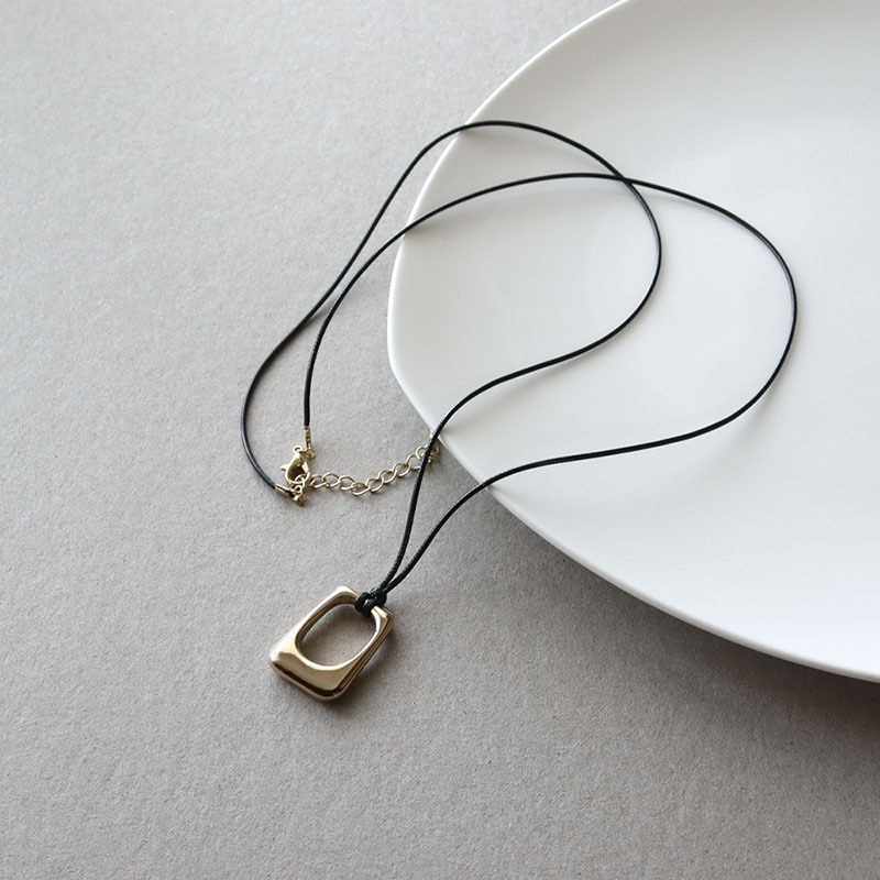 - 少し丸みのあるスクエア型のメタルモチーフがポイントになったコードネックレスです。