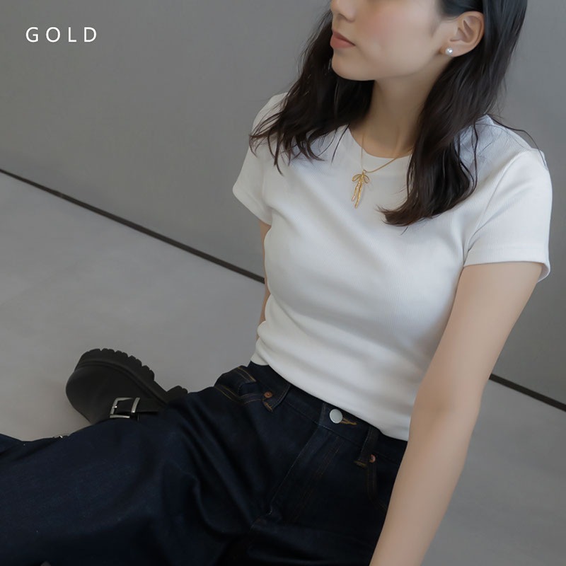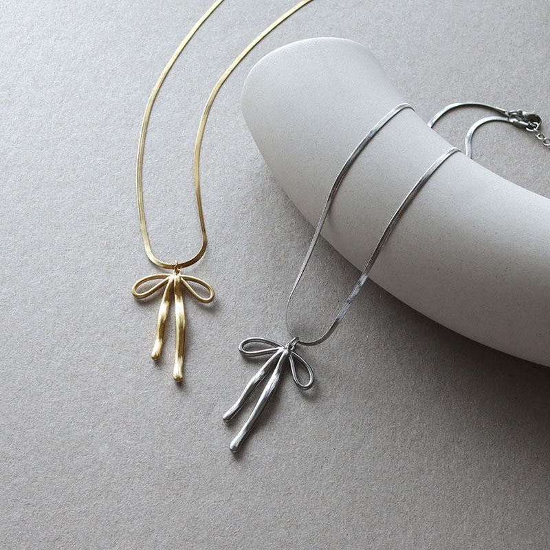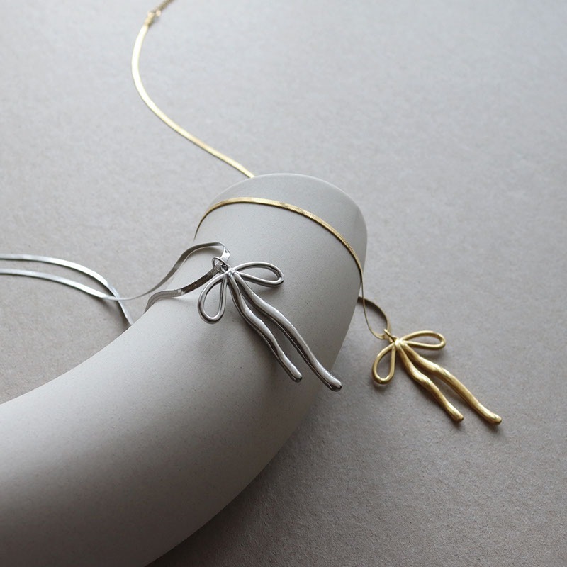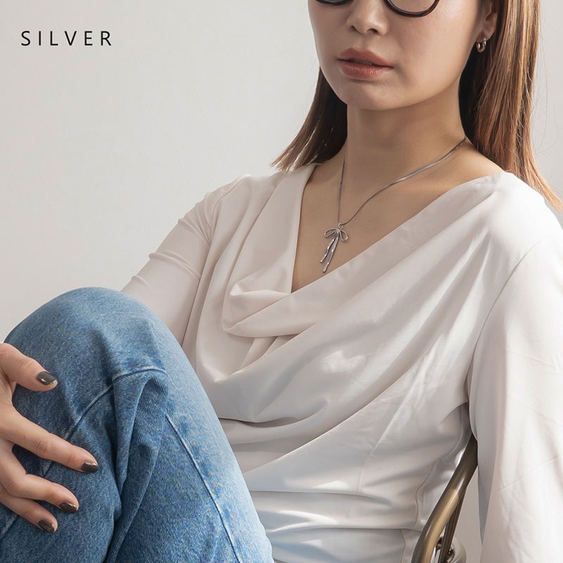 絶妙なニュアンスが効いたリボンモチーフが大人の可愛らしさを演出してくれるデザイン。